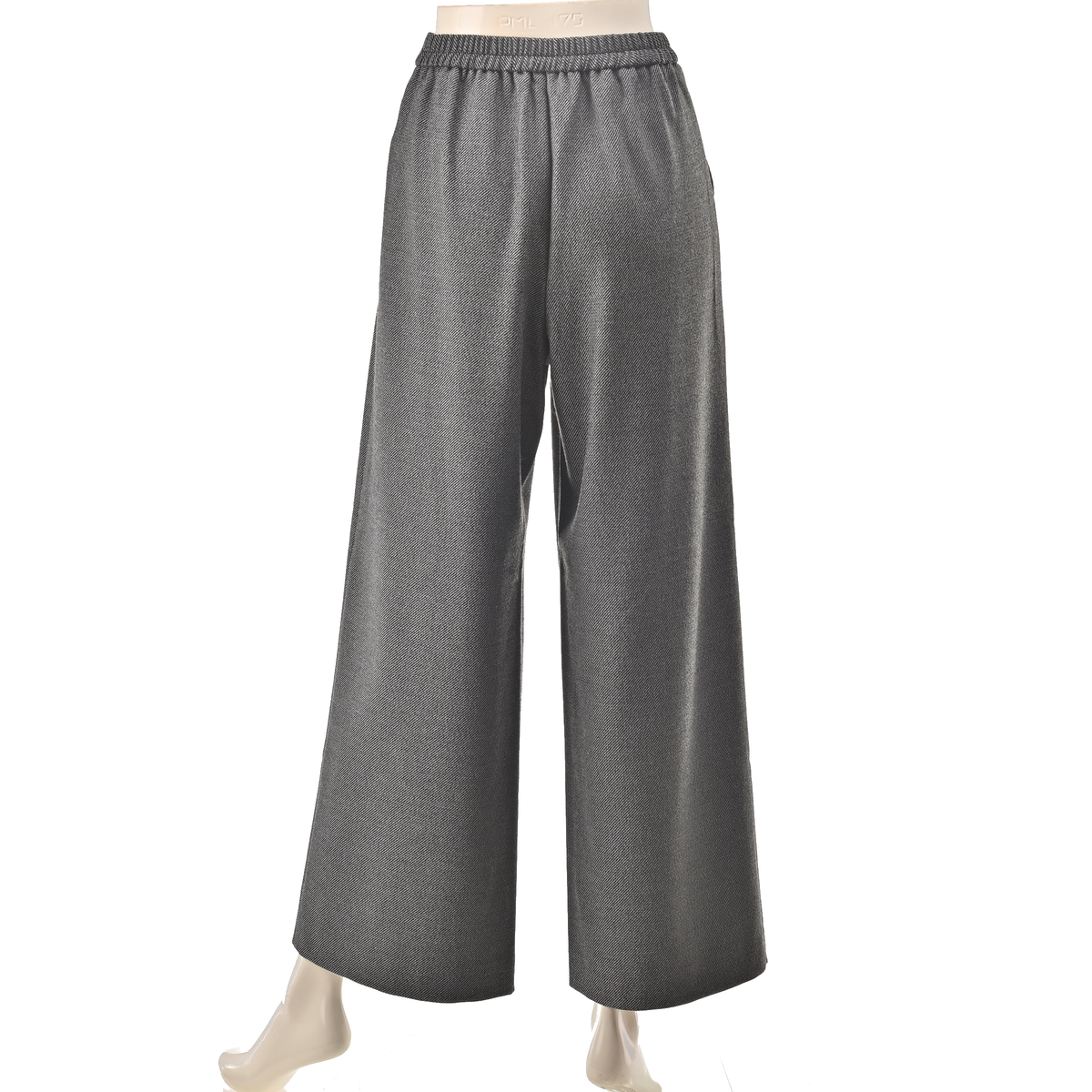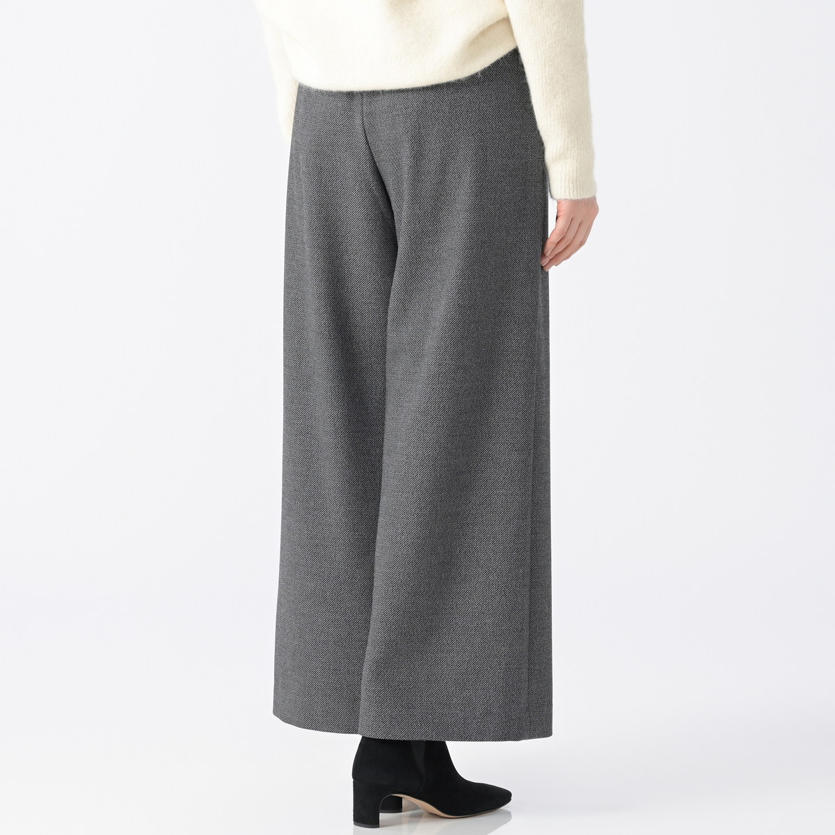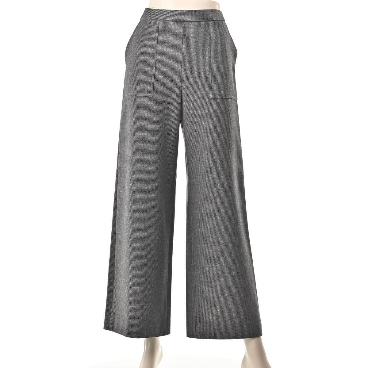 上品なツイード調生地で仕立てたワイドパンツ。株式会社マキムラの匠パターンナーが作り出す立体パターンにより、広がり過ぎない美しいシルエットに仕上げました