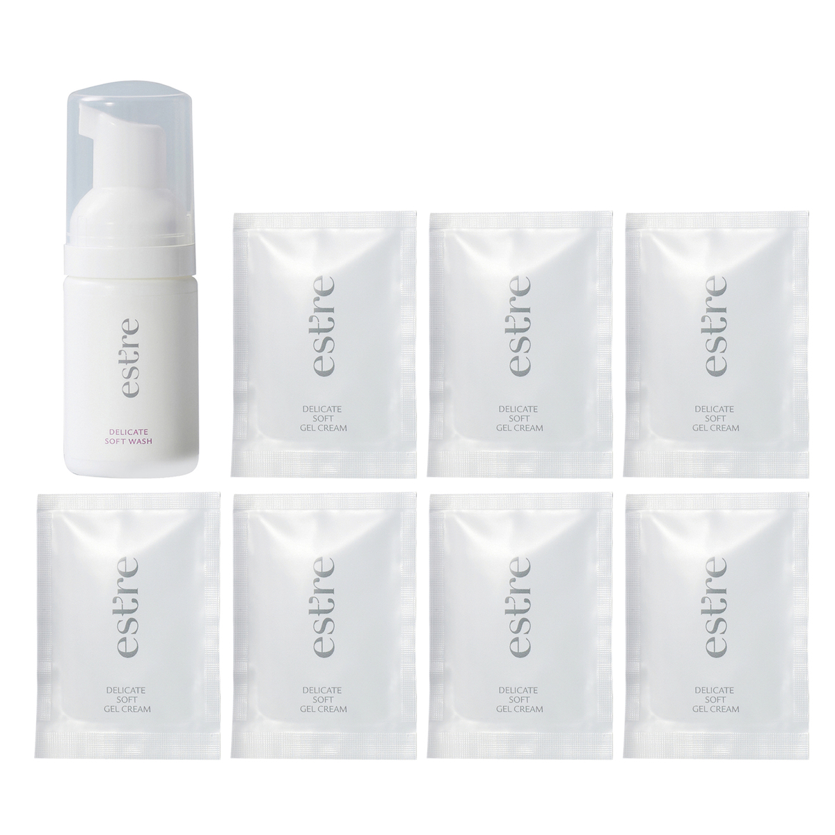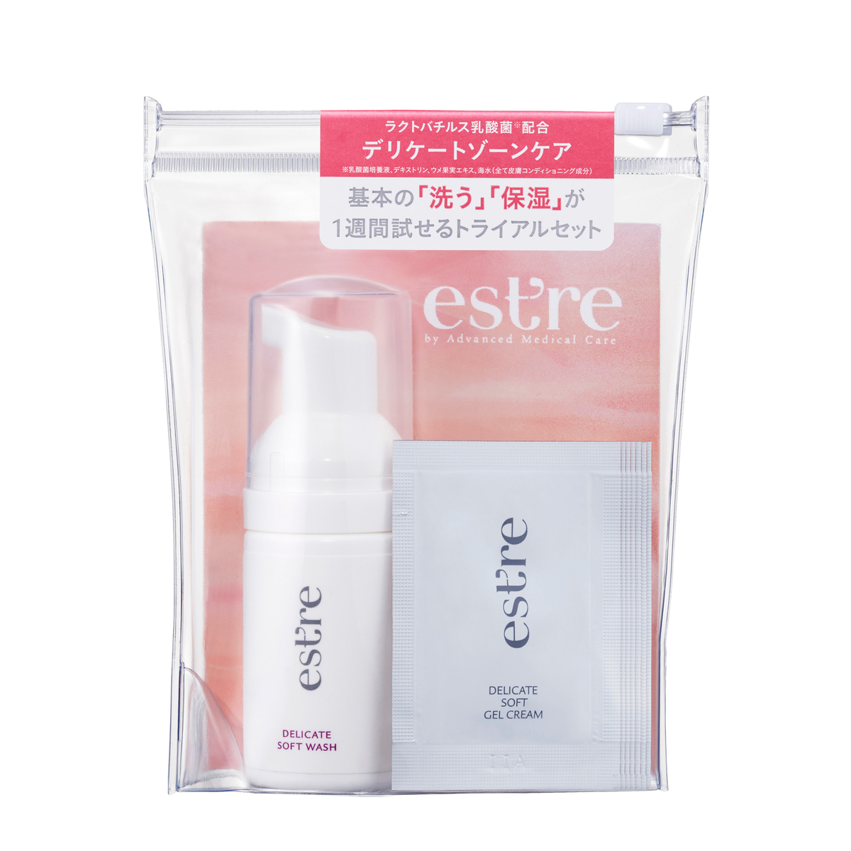[セット内容] ・デリケートソフトウォッシュ30mL ・デリケートソフトジェルクリーム2g×7包 [使用方法] <デリケートソフトウォッシュ> 清潔にしたい部分のお肌を軽くぬらした後、適量(2〜3プッシュ分)の泡を手に取り、手のひらでやさしく洗います。その後、充分に洗い流してください <デリケートソフトジェルクリーム> 手に取り、ケアをしたい部位にやさしくなじませてください [注意事項] ※お肌に異常が生じていないかよく注意して使用してください ※化粧品がお肌に合わないとき即ち次のような場合には、使用を中止してください。そのまま化粧品類の使用を続けますと、症状を悪化させることがありますので、皮膚科専門医等にご相談されることをおすすめします (1)使用中、赤味、はれ、かゆみ、刺激、色抜け(白斑等)や黒ずみ等の異常があらわれた場合 (2)使用したお肌に、直射日光があたって上記のような異常があらわれた場合 ※傷やはれもの、しっしん等、異常のある部位にはお使いにならないでください ※乳幼児の手の届かない場所に保管してください ※直射日光を避け、高温多湿の場所、極端に低温の場所には置かないでください ※中身の出し戻しは変質の原因になりますのでおやめください 【日本製】 [成分] ■エストール デリケートソフトウォッシュ: 水、イソペンチルジオール、アシル(C12、14)アスパラギン酸TEA 、 コカミドDEA 、コカミドプロピルベタイン、ラウロイルメチルアラニンNa 、クエン酸、乳酸菌培養液、デキストリン、ウメ果実エキス、海水、ダイズ種子エキス、ダマスクバラ花エキス、カニナバラ果実エキス、ローズマリー葉油、ニオイテンジクアオイ油、オレンジ果皮油、加水分解ローヤルゼリータンパク、加水分解水添デンプン、グリコシルトレハロース、ジヒドロキシプロピルアルギニンHCl、α-グルカンオリゴサッカリド、カプリン酸グリセリル、ラウリン酸ポリグリセリル-2 、BG、ラウリン酸ポリグリセリル-10 ■エストールデリケートソフトジェルクリーム: 水、BG、トリ(カプリル酸/カプリン酸)グリセリル、グリセリン、DPG、乳酸菌培養液、デキストリン、ウメ果実エキス、海水、ダイズ種子エキス、アラントイン、ソメイヨシノ葉エキス、加水分解コラーゲン、ヒアルロン酸Na、ホホバ種子油、スクワラン、ジラウロイルグルタミン酸リシンNa、ヤシ油脂肪酸ポリグリセリル-3、水酸化K、キサンタンガム、(アクリレーツ/アクリル酸アルキル(C10-30))クロスポリマー、カルボマー、フェノキシエタノール