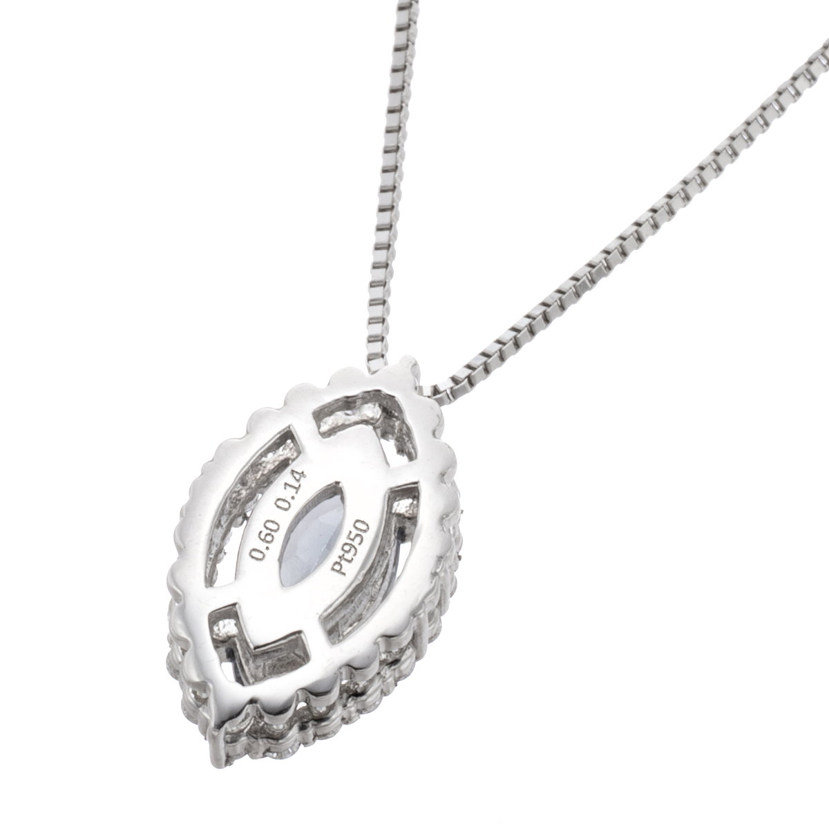 素材:[スピネル] マーキスカット 爪留め 1石 0.60ctUP [ダイヤモンド] ラウンドシェイプ 爪留め 20石 合計0.14ctUP 総重量(約) 3.1g 長さ(約) 45.0cm バチカンの内径(約) 1.5×1.1mm 幅(約) 0.5mm チェーンの形状 ベネチアン 留具の形状 引き輪 アジャスターの有無 有(スルーピン式) チェーンの取り外し 可 ヘッドの縦×横(約) 12.0×7.5mm [地金] プラチナ950 ■受注発注商品のためデザイン・価値に影響のない範囲で仕様が変わる場合がございます ■素材の大きさ・形・色合い、製品のサイズは1点1点多少異なります ■プラチナカラースピネルは商業名で宝石名はスピネルです 【日本製】