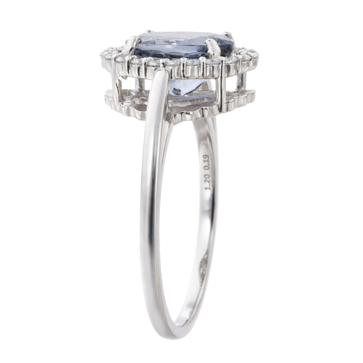 1.20ctUPのスピネルを主役にしたリング。プラチナの上質な光沢と、周囲にあしらった22石のダイヤモンドが華やかさを添えます。気品あるスピネルの色彩が指先を美しく引き立て、特別なシーンでも存在感を放つ仕上がりです