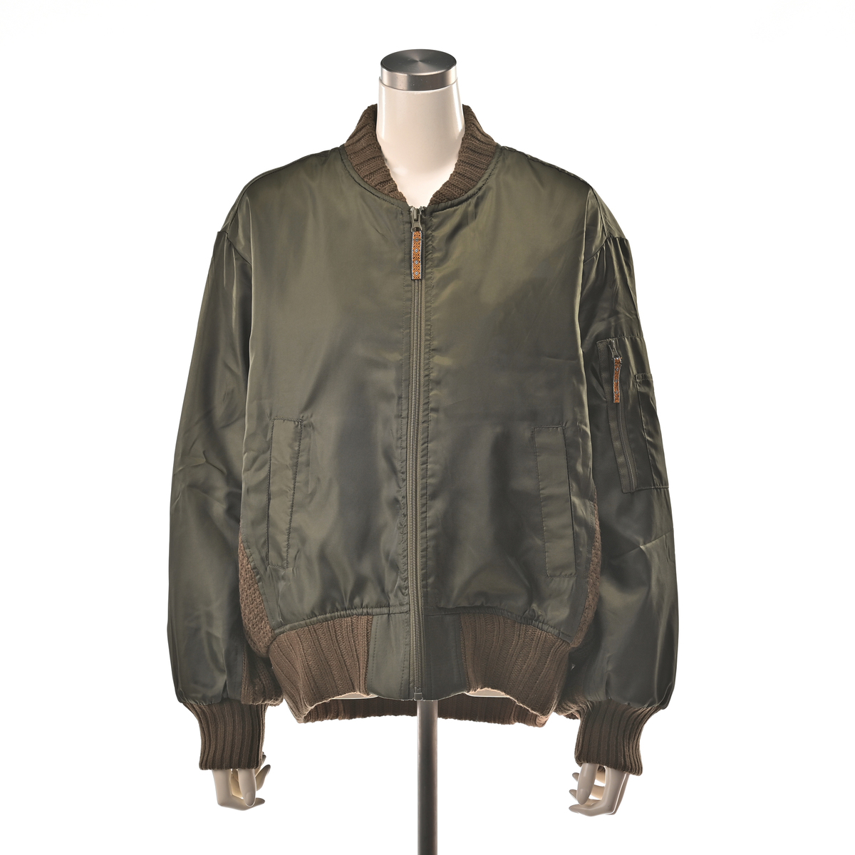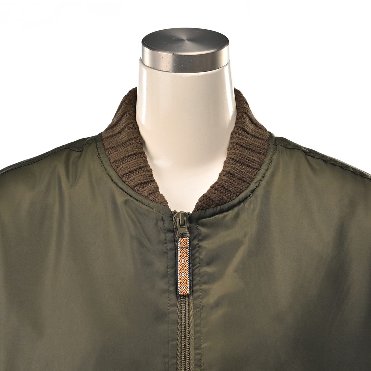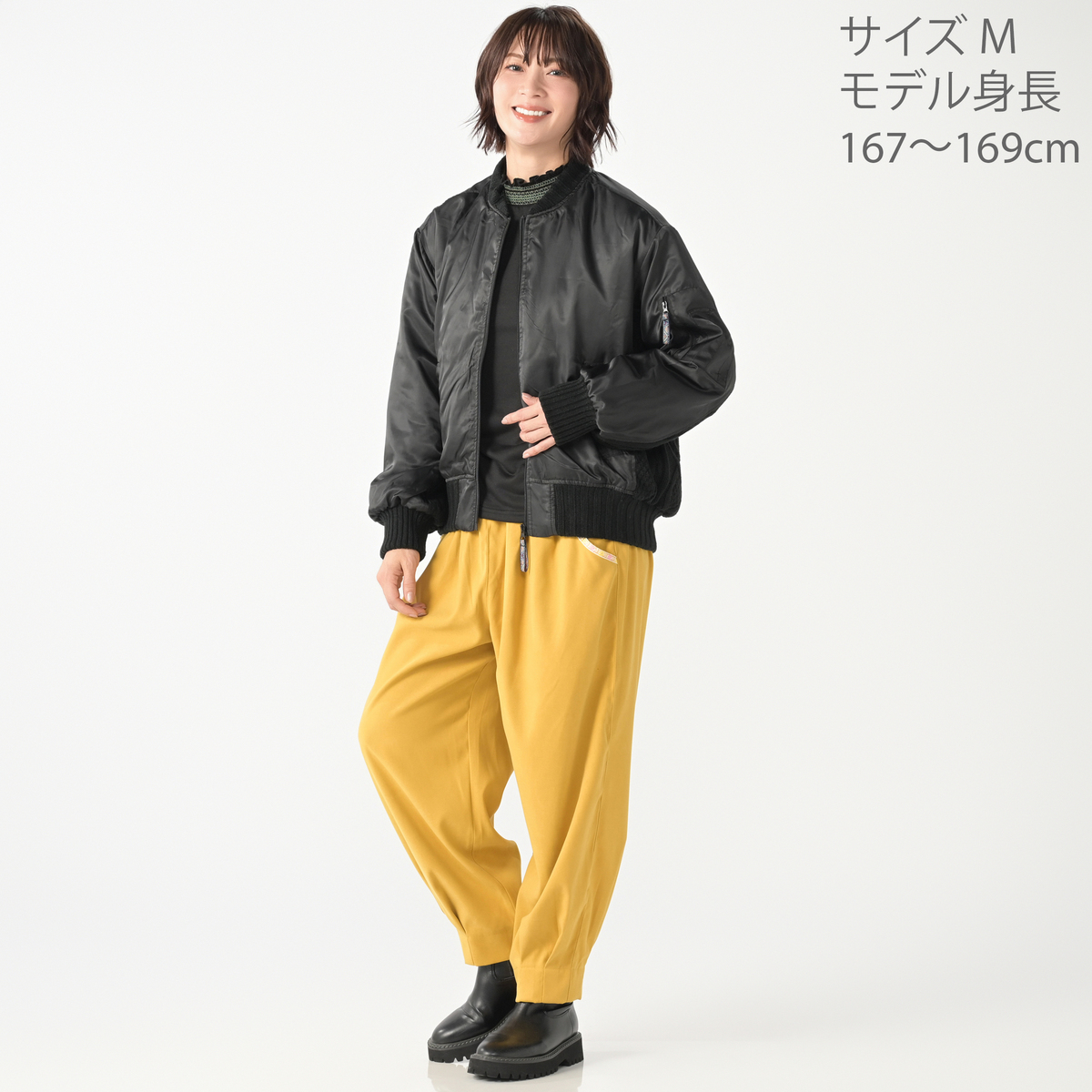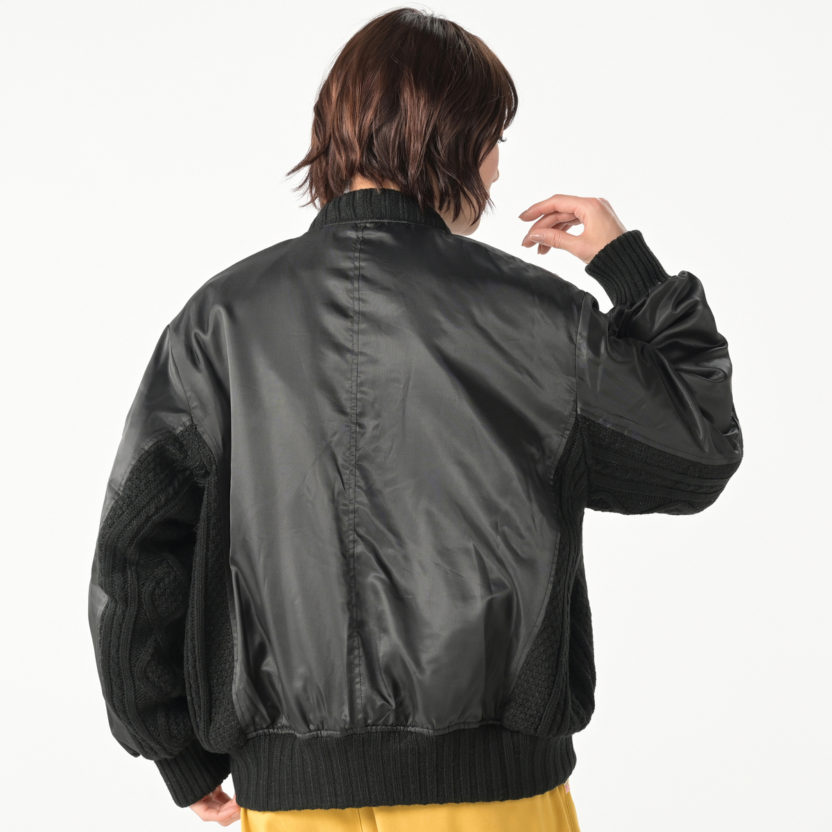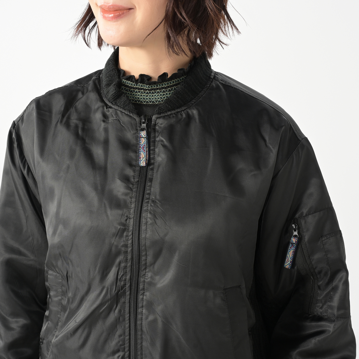 引手や左腕のファスナー端にチロリアンテープをあしらった、ミリタリーライクなデザイン。ツイル素材とニットの組合せで、カジュアルながら上品な印象に。ゆったりシルエットで、気軽に日常使いできます