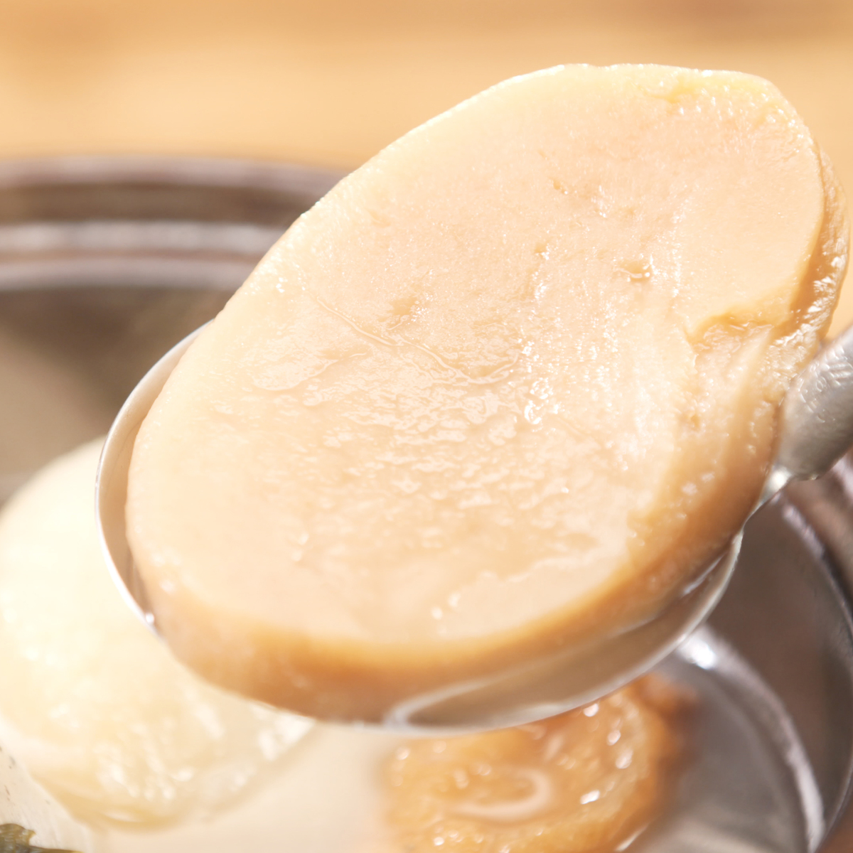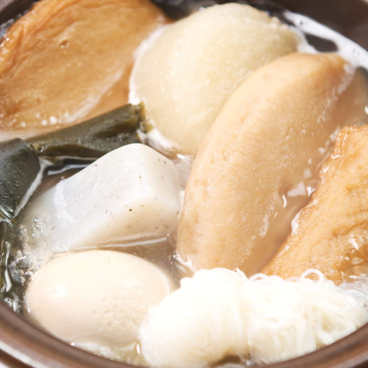 鰹節(鰹節エキス)に昆布が香るだしがたっぷり入ったなだ万自慢のおでん。湯煎またはお鍋で温めるだけで手軽に楽しめます