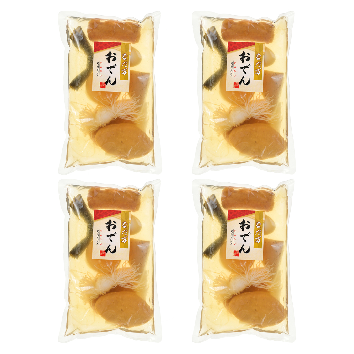 [アレルギー物質特定原材料8品目] 卵、小麦、えび [内容量] 1000g×4袋 [賞味期間] 製造日より60日 [保存方法] 開封前:直射日光、高温多湿を避けて保存してください 開封後:開封後はお早めにお召し上がりください [お召し上がり方] 湯煎で温める場合:袋ごと熱湯に入れて約10分 袋から取り出して鍋で温める場合:中身を鍋に移して中火で約10分 [注意事項] ※加熱時間は目安です。様子を見ながら調節ください ※ゆで卵が破裂する恐れがありますので、電子レンジの御使用はご遠慮ください [原料原産地] 大根(国産) [原産国] 日本 [原材料] 大根(国産)、こんにゃく、おでん用調味液(食塩、ぶどう糖果糖液糖、醤油、その他)、ゆで卵、海老真丈、ごぼう巻、魚真丈、しらたき、昆布/加工でん粉、水酸化Ca、調味料(アミノ酸等)、(一部にえび・小麦・卵・大豆・やまいもを含む)