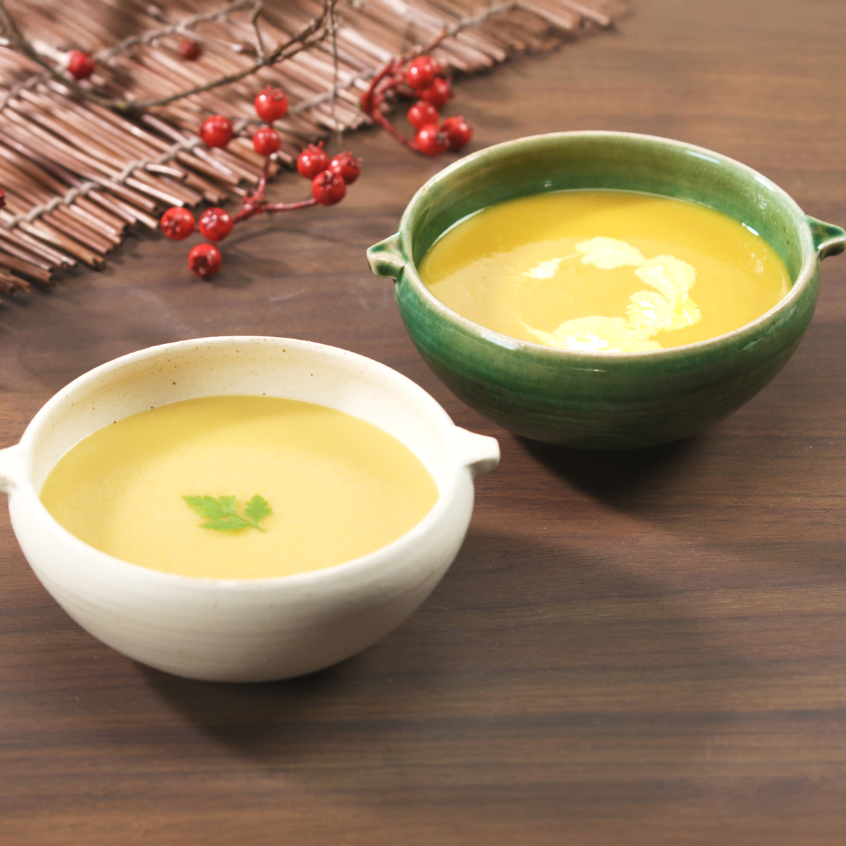 [アレルギー物質特定原材料8品目] 乳 [商品内容] ・かぼちゃ130g×4個 ・とうもろこし130g×4個 [賞味期限] 出荷時点で賞味期限まで240日以上ある商品をお届けします [保存方法] 開封前:直射日光を避け、常温で保存してください 開封後:開封後はお早めにお召し上がりください [お召し上がり方] 湯せん: 封を切らずに袋ごと沸騰したお湯に入れて温め、器に移してお召し上がりください(目安時間:沸騰後弱火で約5分) 電子レンジ: 中身を必ずレンジ対応の容器に移し、ラップをかけて温めてください(目安時間:500Wで約1分30秒) 冷製: そのまま冷蔵庫で冷やし、よく振ってから器に移してお延仕上がりください お好みにより少量の牛乳や生クリームを加えますと、更に美味しくお召上がりいただけます ※使用機器等により、調理時間は異なります。様子を見ながら調節してください ※袋の一部に金属が使用されているため、袋のまま電子レンジで加熱することはできません [注意事項] ※開封後は、保存がききませんので必ず使い切ってください ※袋の一部に金属が使用されているため、袋のまま電子レンジで加熱することはできません ※本製品はレトルトパウチ食品です ※加熱調理の際は、大変熱くなりますので、容器の取扱いや中身のはね等による火傷にご注意ください。また、開封時の袋のフチで手を切らないよう十分ご注意ください [原料原産地] かぼちゃ:かぼちゃ(国産) とうもろこし:スイートコーン(アメリカ産) [原産国] 日本 [原材料] かぼちゃ: 野菜(かぼちゃ(国産)、たまねぎ、じゃがいも、にんじん、セロリ)、乳等を主要原料とする食品、生クリーム、バター、砂糖、魚醤加工品(魚醤、昆布エキス、食塩、酵母エキス)、チキンブイヨン、食塩、かつお節エキス、みそ、香辛料/乳化剤、(一部に乳成分・大豆・鶏肉を含む) とうもろこしスープ: 野菜(スイートコーン(アメリカ産)、たまねぎ、じゃがいも)、コーンピューレ、乳等を主要原料とする食品、魚醤加工品(魚醤、昆布エキス、食塩、酵母エキス)、砂糖、植物油脂、食塩、チキンブイヨン、かつお節エキス、みそ/乳化剤、(一部に乳成分・大豆・鶏肉を含む)