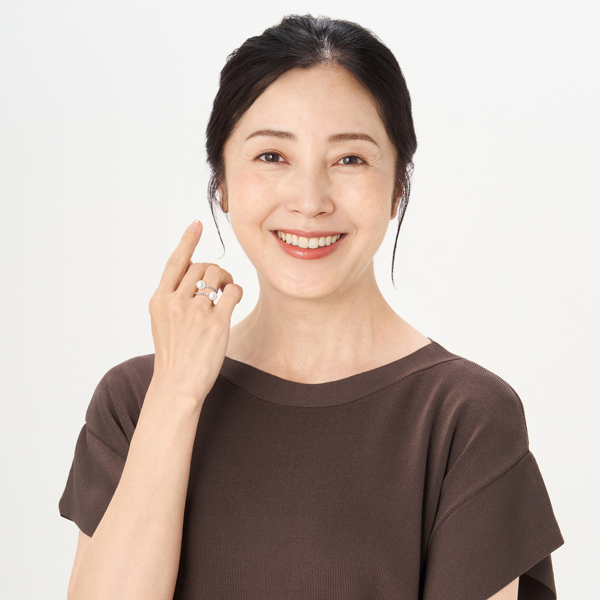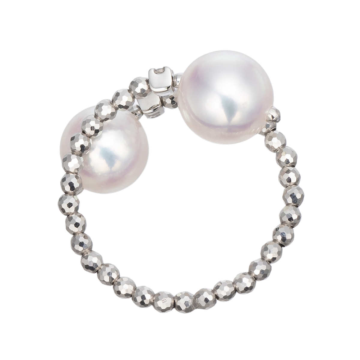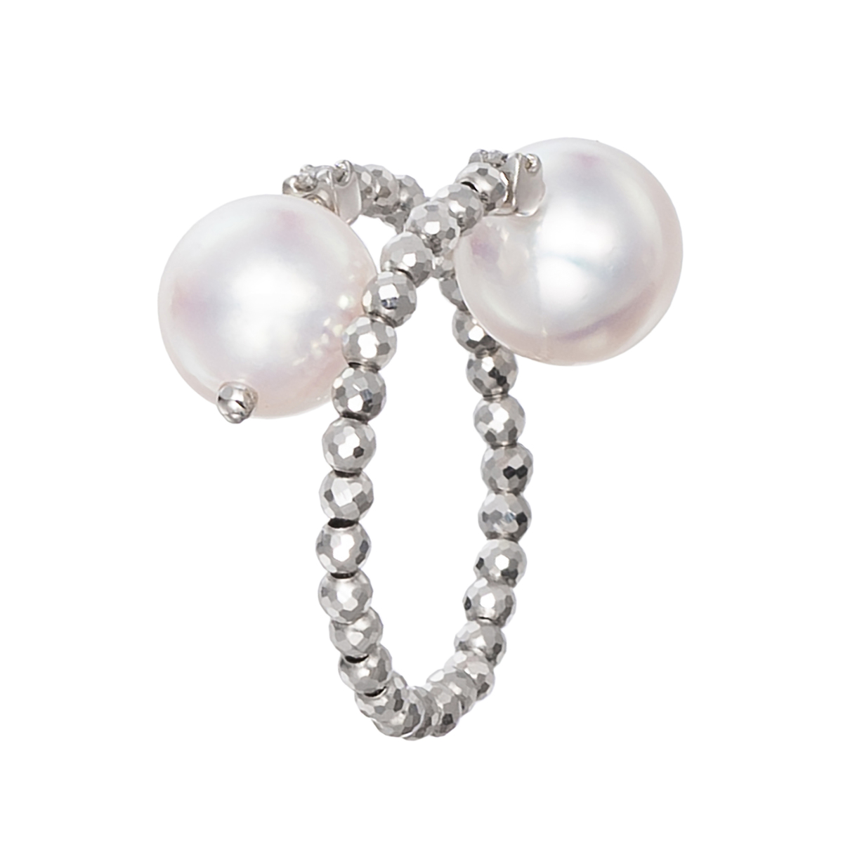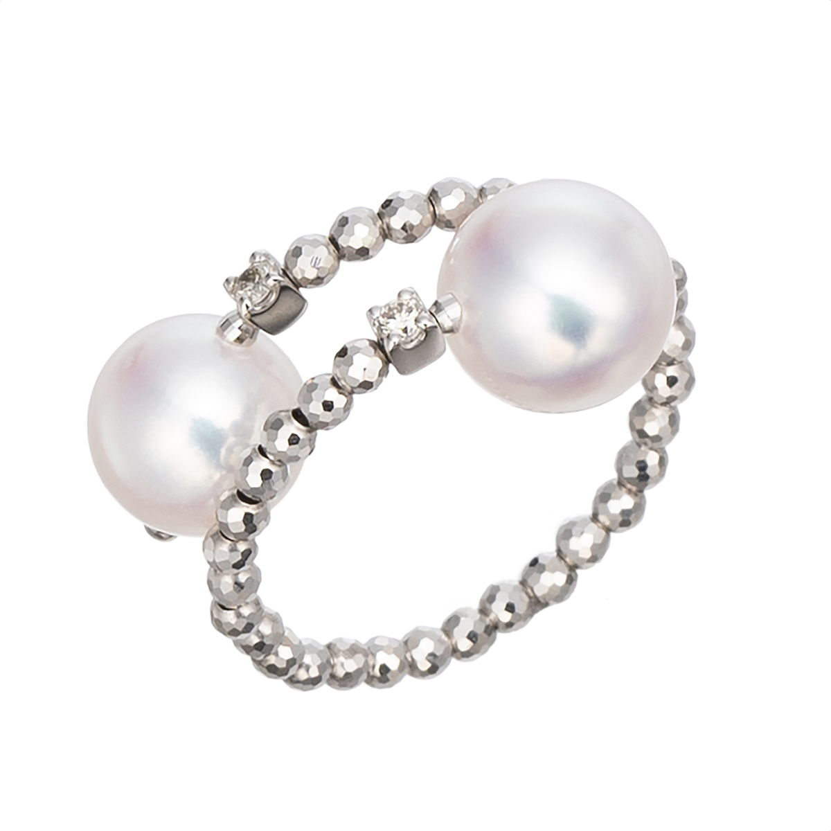 テリが美しいアコヤ真珠をあしらったツインフリーリング。上品な真珠のテリとダイヤモンドの輝きが魅力的です