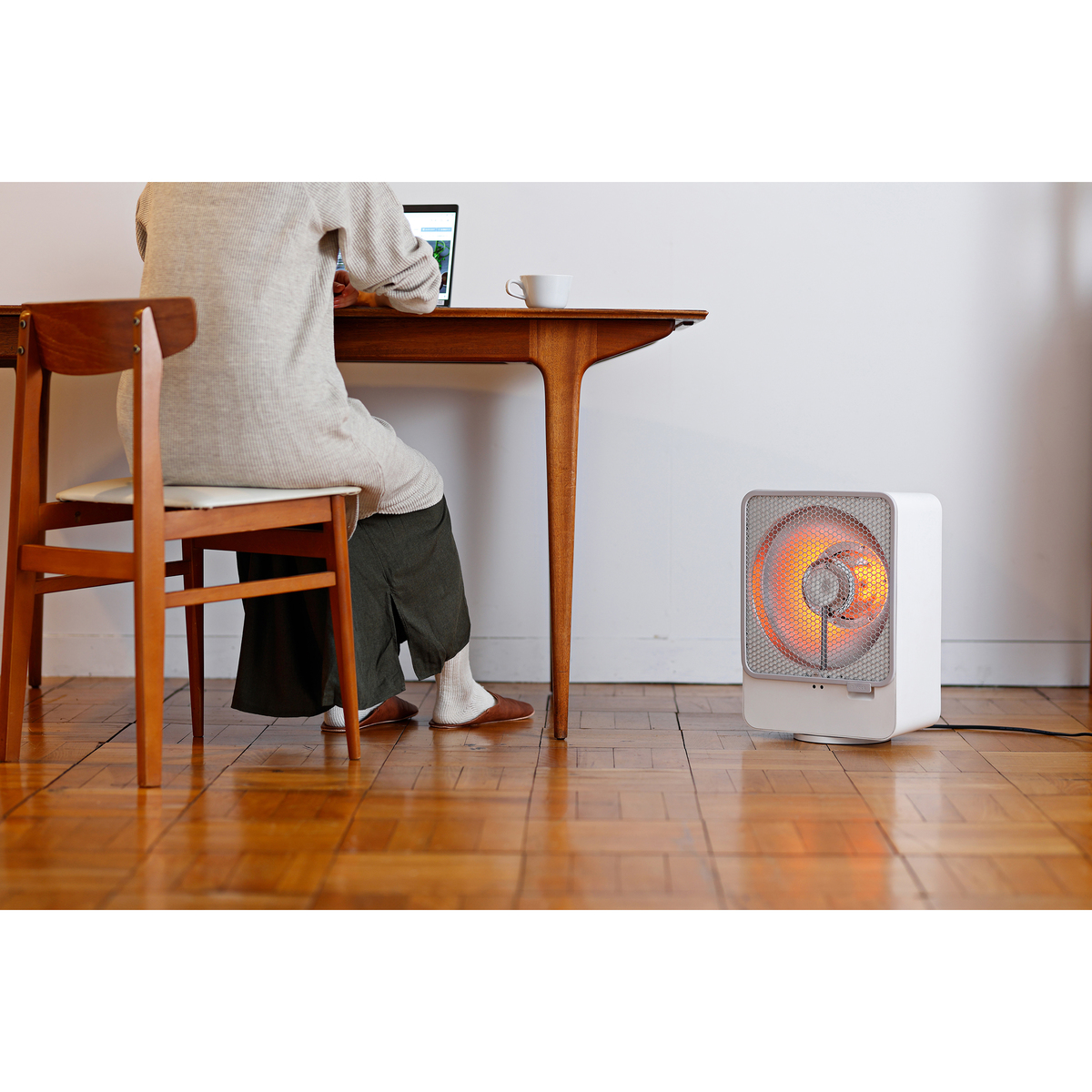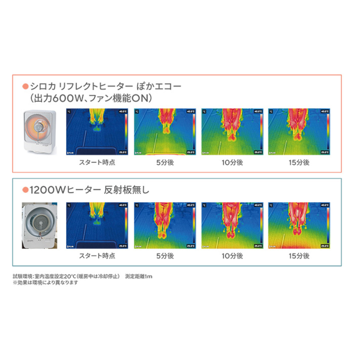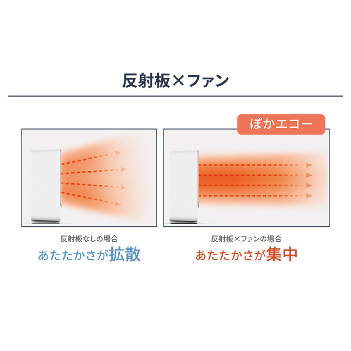 反射板を備えたシロカ リフレクトヒーター ぽかエコー。反射させることで熱を前方に集める構造で、あたたかさがほしいところに集中的に熱を届けます。ファン機能を使えば、あたたかい範囲を広げることも可能です