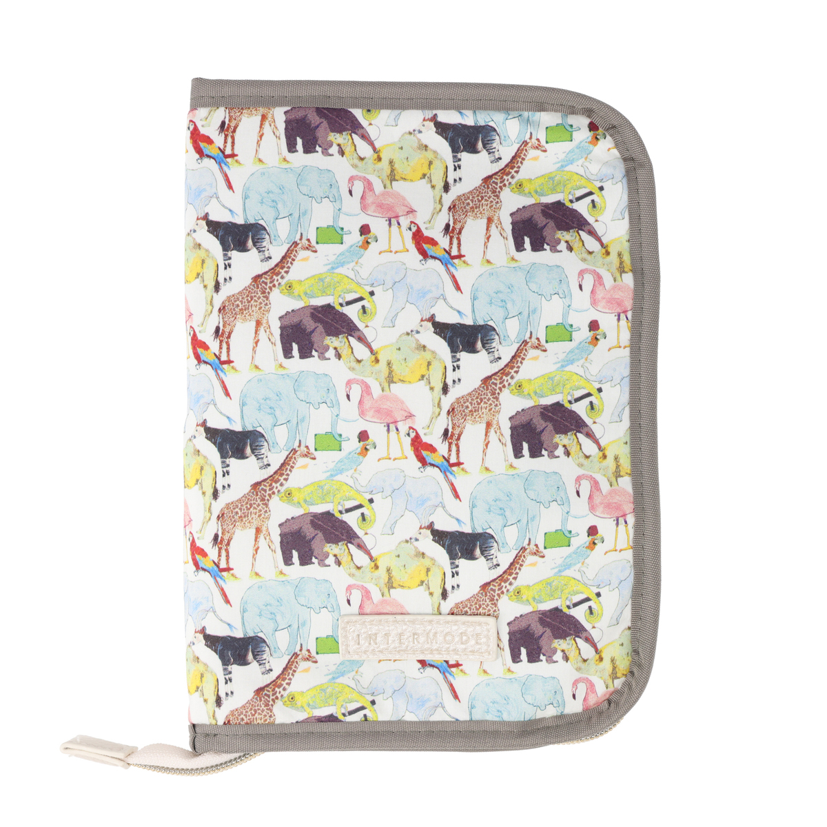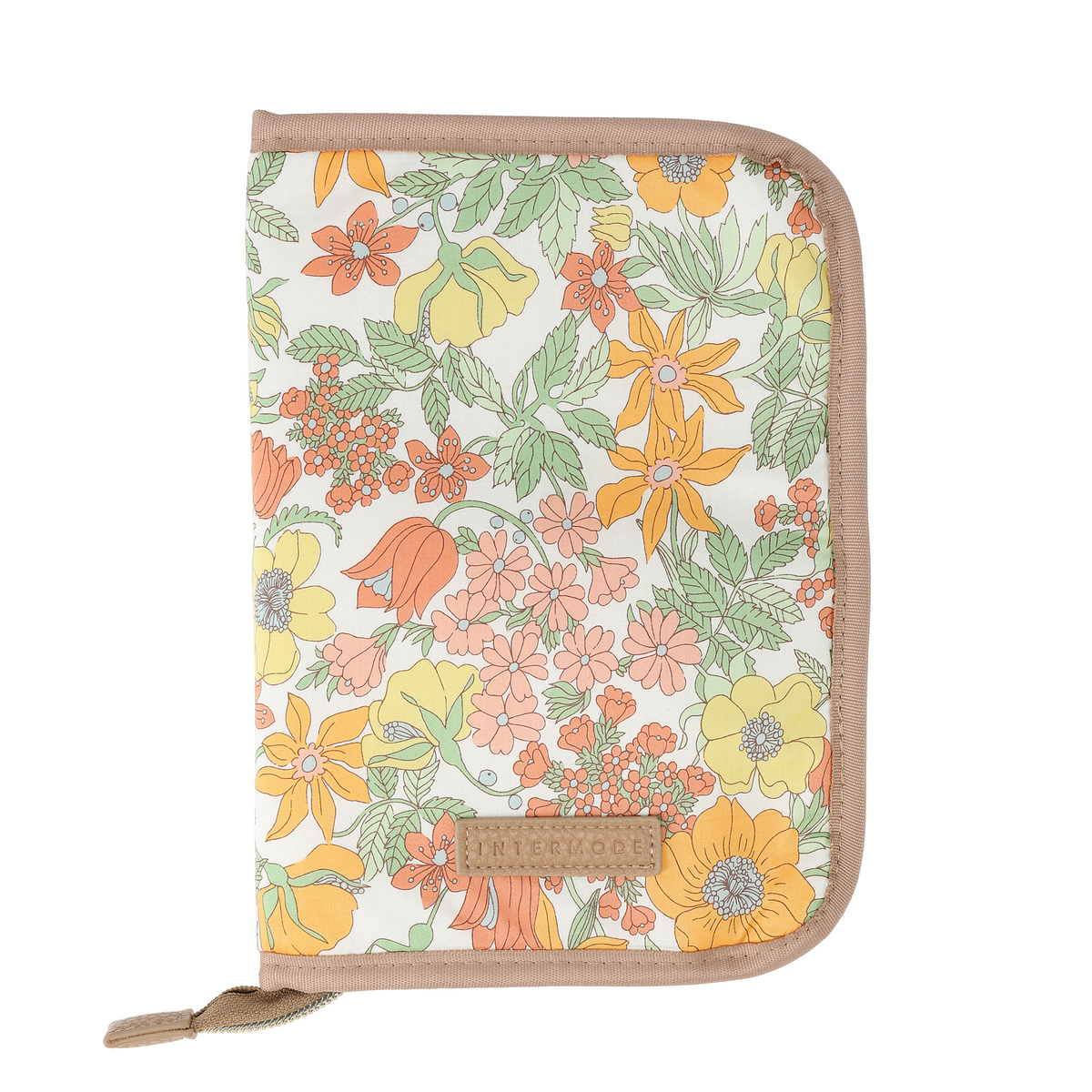背面をシックな色の合皮で切り替え、すっきりとした仕上がりに。また、ロゴネームにはINTERMODEのロゴを刻印しています