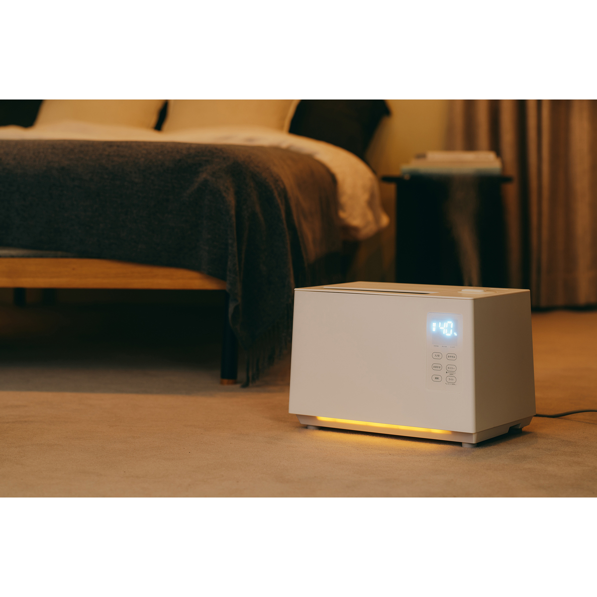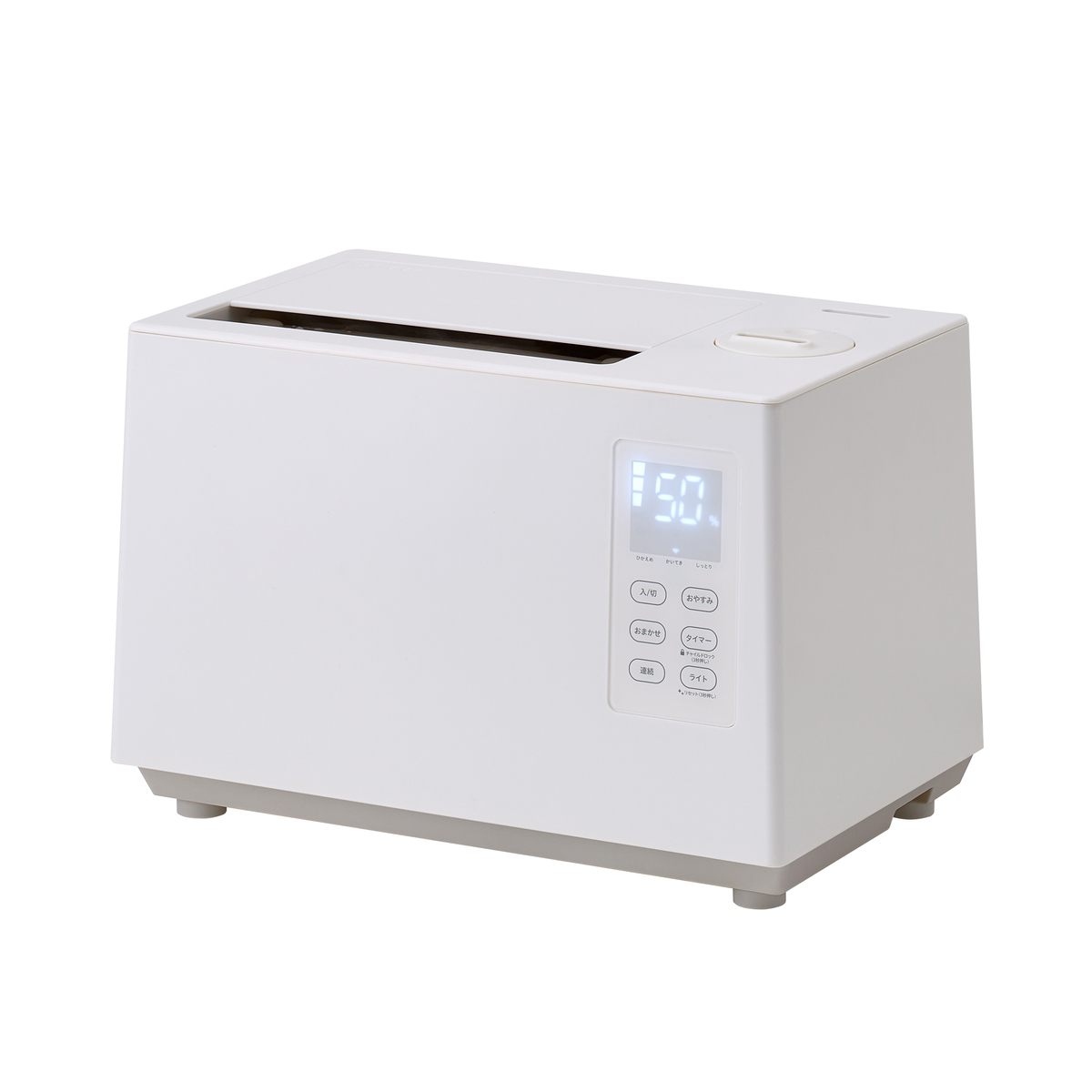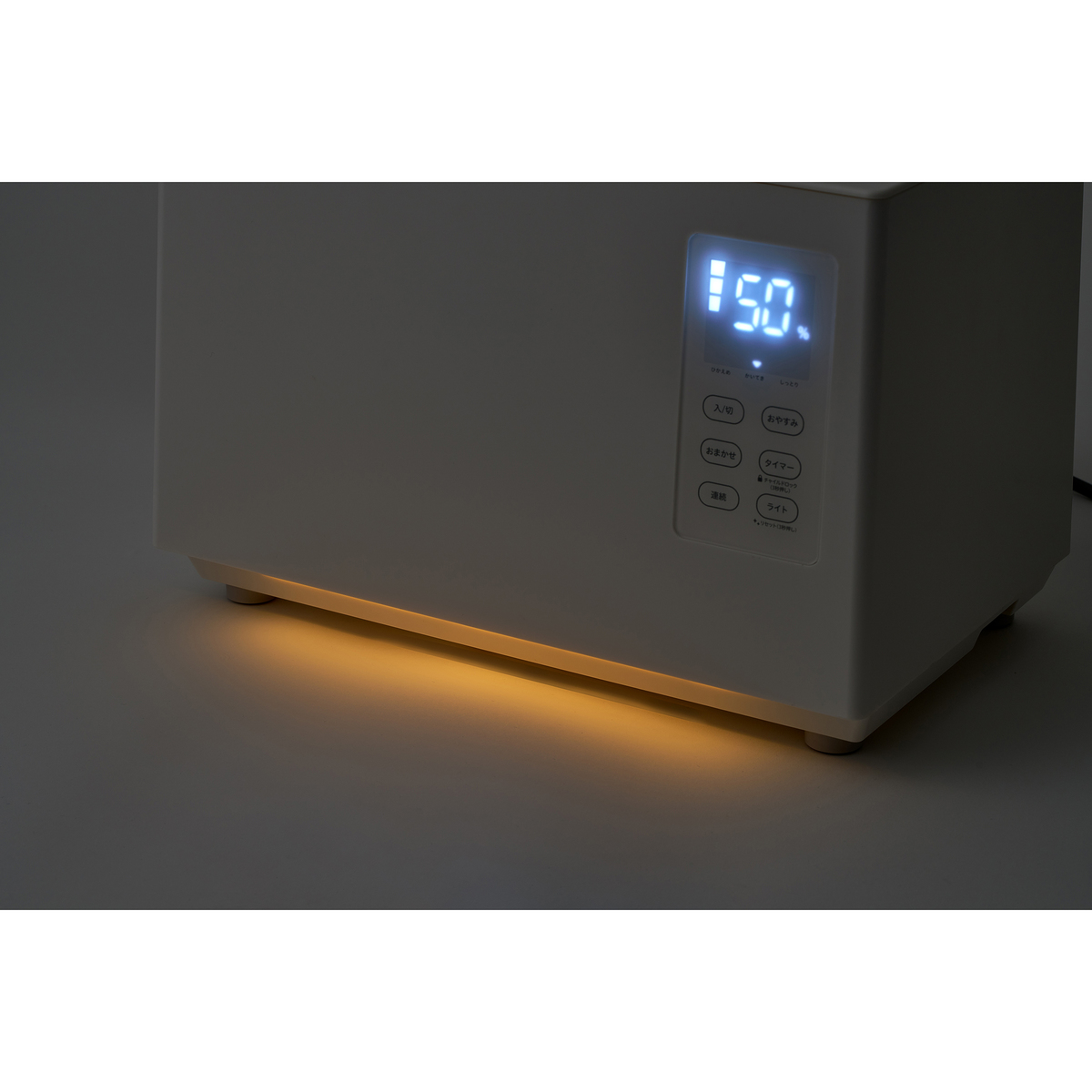 おまかせ・連続・おやすみなど複数の運転モードを搭載。上部給水式のため、タンクを持ち運ばずラクに水を注げます。寝室など暗い部屋で使う際は、間接照明代わりとしても活躍するフットライトも備えています