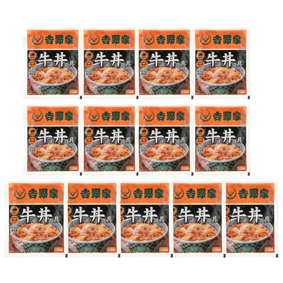 [アレルギー物質特定原材料8品目] 小麦 [内容量] 120g×13袋 [賞味期限] 出荷時点で賞味期限まで130日以上ある商品をお届けします [保存方法] 開封前:-18℃以下で保存してください 開封後:開封後はお早めにお召し上がりください [お召し上がり方] <電子レンジの場合> 凍ったまま袋の封は切らずに、1袋ずつ〔蒸気口〕のある面を上にしてお皿にのせ加熱してください ※500Wで約3分 600Wで約2分30秒 ※電子レンジ調理は加熱ムラ防止から自動設定はせず、指定ワット数・時間を目安に設定してください ※電子レンジの機種、ワット数により加熱時間が多少異なる事があります <湯煎調理する場合> 凍ったまま袋の封は切らずに、大きめの鍋で、お湯が沸騰してから入れ、フタをせず加熱してください ※約4分間沸騰 ※湯せん調理の際は、袋が鍋のふちに触れないように大きめの鍋に入れ、ふきこぼれにご注意ください ※開封時、袋のふちで手を切らないように、又、中身がはねて衣服を汚さないようにご注意ください [注意事項] ※まれに、牛肉にやや硬い部分がありますが、スジですので食べても問題ありません ※加熱後は、やけどに注意して袋をお取扱いください ※解凍・加熱後は、開封・未開封ともに、冷蔵及び再凍結による保管はしないでください ※アレルギー体質の方は、原材料名をよく確認してください ※蒸気口を上にしないと蒸気が逃げず、袋が破裂しますのでご注意ください [原料原産地] 牛肉(米国又はカナダ又は豪州(5%未満)) [原産国] 日本 [原材料] 牛肉(米国又はカナダ又は豪州(5%未満))、タレ(ぶどう発酵調味料、醤油、砂糖、醤油加工品、その他)、玉ねぎ/調味料(アミノ酸等)、カラメル色素、酸味料、香辛料抽出物、乳化剤、(一部に小麦・牛肉・大豆・りんご・ゼラチンを含む)