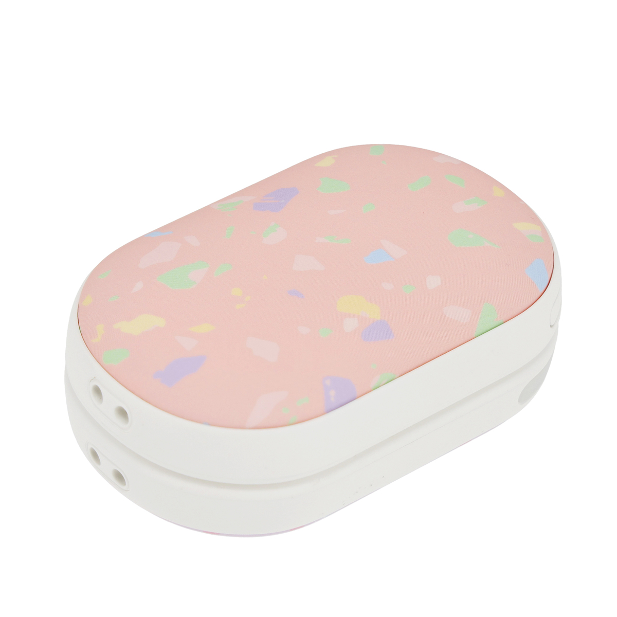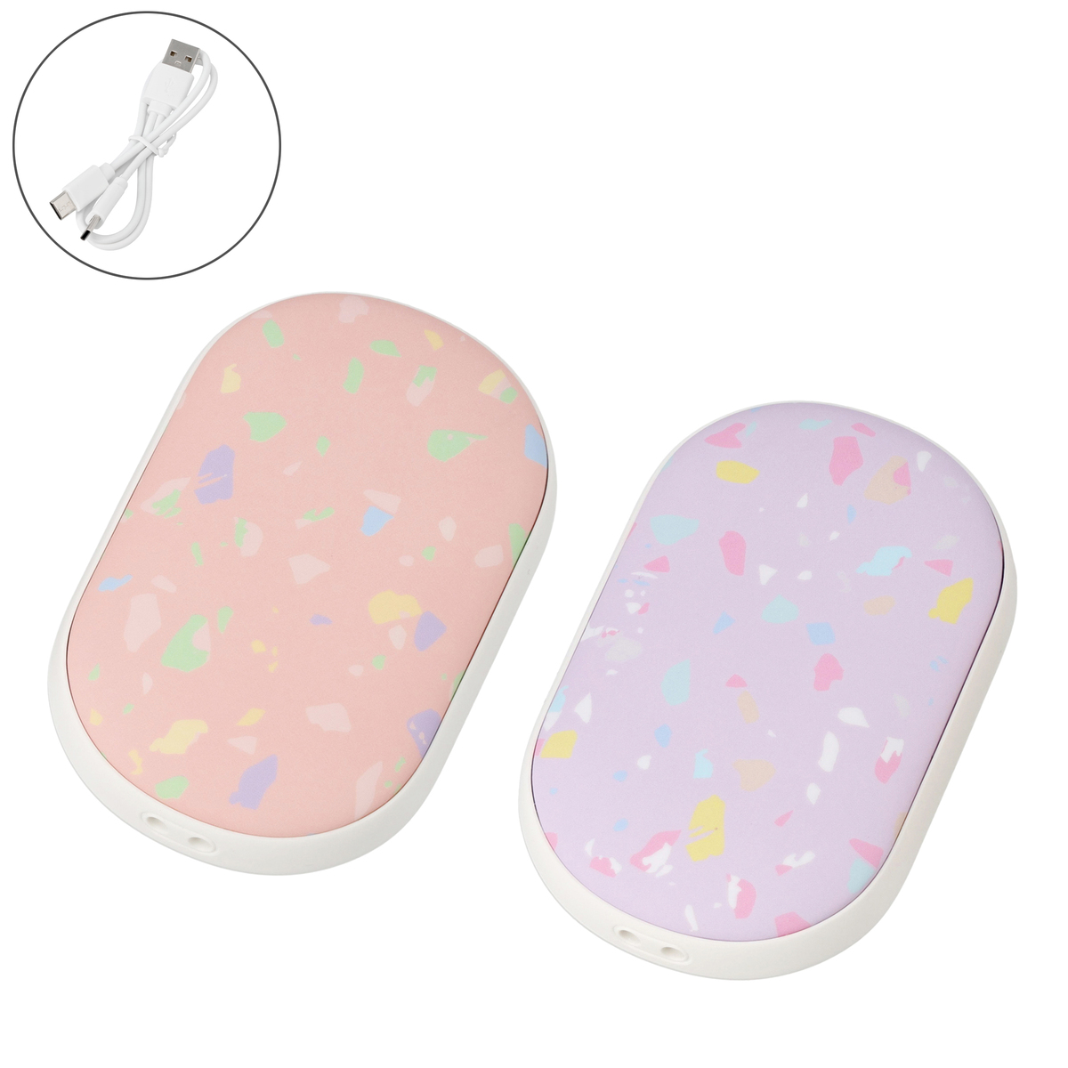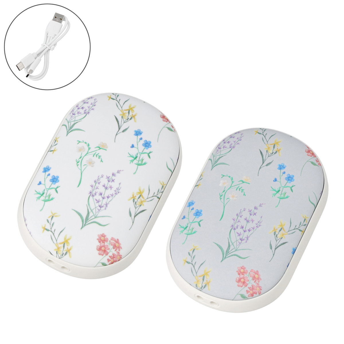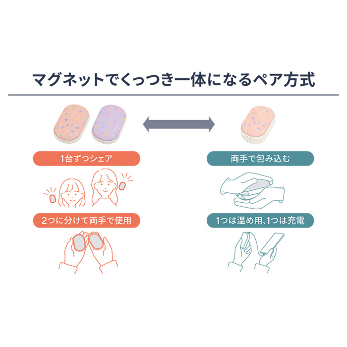 手のひらサイズの充電式カイロ。持ち運びやすく、手先を温めたり、ポケットに入れて使えます。外出時や移動中にも便利です
