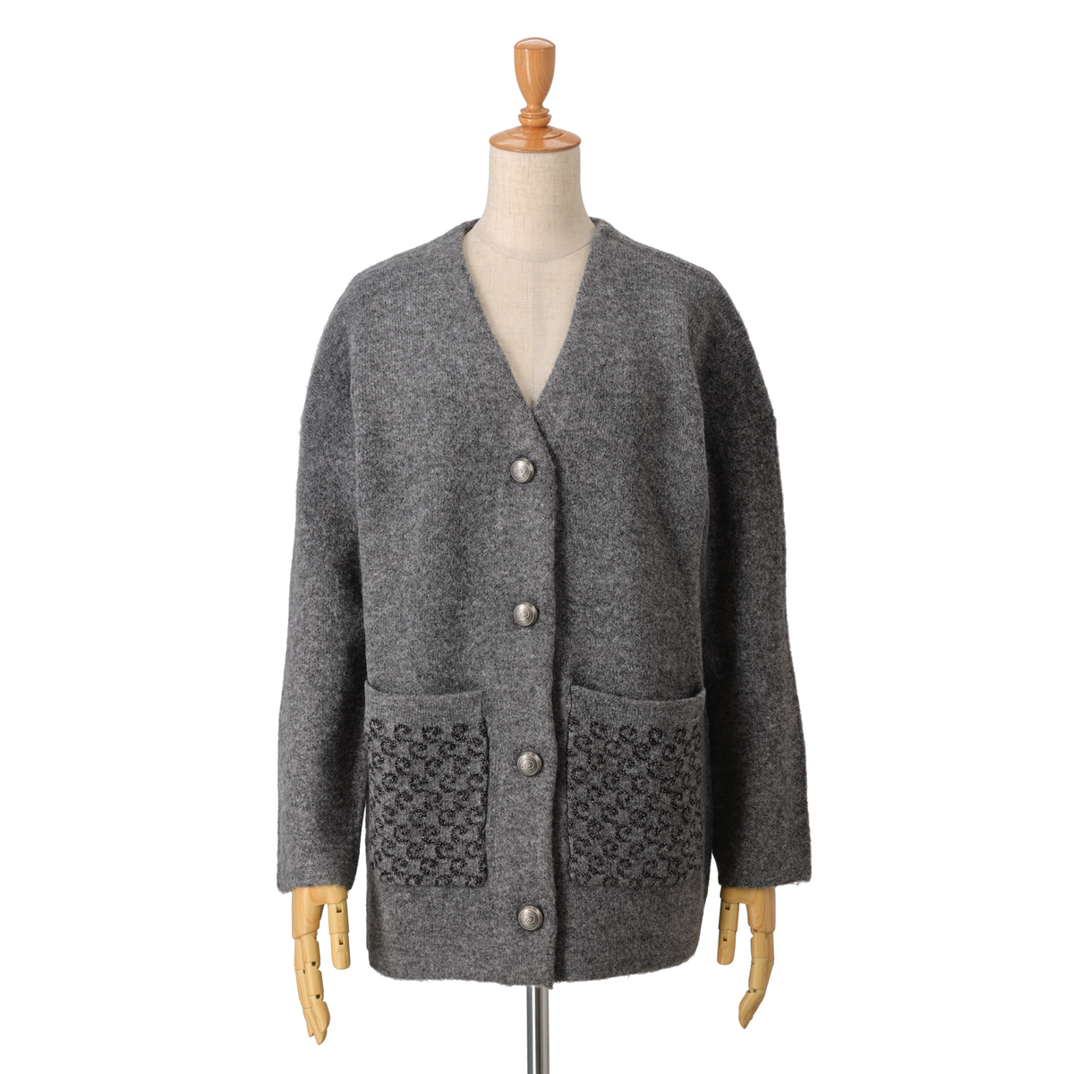 No. 750190 PCD ロゴラメジャカードポケットのVネックニットカーディガン