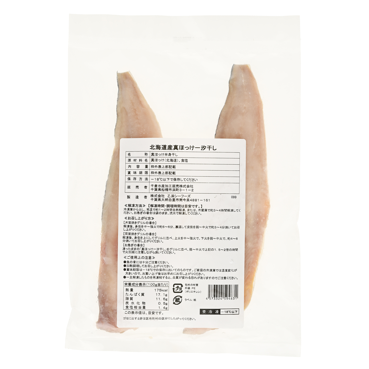 [アレルギー物質特定原材料8品目] なし [内容量] 160g×4 [賞味期限] 出荷時点で賞味期限まで60日以上ある商品をお届けします [保存方法] 開封前:ー18℃以下で保存してください 開封後:開封後はお早めにお召し上がりください [お召し上がり方] <解凍方法> 解凍時間・調理時間は目安です 冷凍庫から出し、常温で約1〜2時間自然解凍、または冷蔵庫で約3〜4時間解凍してください。お急ぎの場合は袋のまま、流水で解凍してください <お召し上がり方> 片面焼きグリルの場合: 解凍後、身側を中〜強火で約5〜6分、裏返して皮側を弱〜中火で約3〜4分焼いてお召し上がりください 両面焼きグリルの場合: 解凍後、身側を上にしてグリルに並べ、上火を中〜強火で、下火を弱〜中火で、約4〜6分焼いてお召上がりください お急ぎの場合: 凍ったままの「真ほっけ一汐干し」をグリルに並べ、弱〜中火で上記の1.5〜2倍の時間で火加減に注意しながら焼いてください [注意事項] ※魚の骨には十分ご注意ください ※加熱調理してお召し上がりください ※賞味期限は-18℃での保存においてのものです。ご家庭にお冷凍庫では温度変化が大きいので、お買い上げ後は早めにお召し上がりください ※一旦解凍したものを再凍結すると、品質が変わる恐れがありますのでご注意ください [原料原産地] 真ほっけ(北海道) [原産国] 日本 [原材料] 真ほっけ(北海道)、食塩