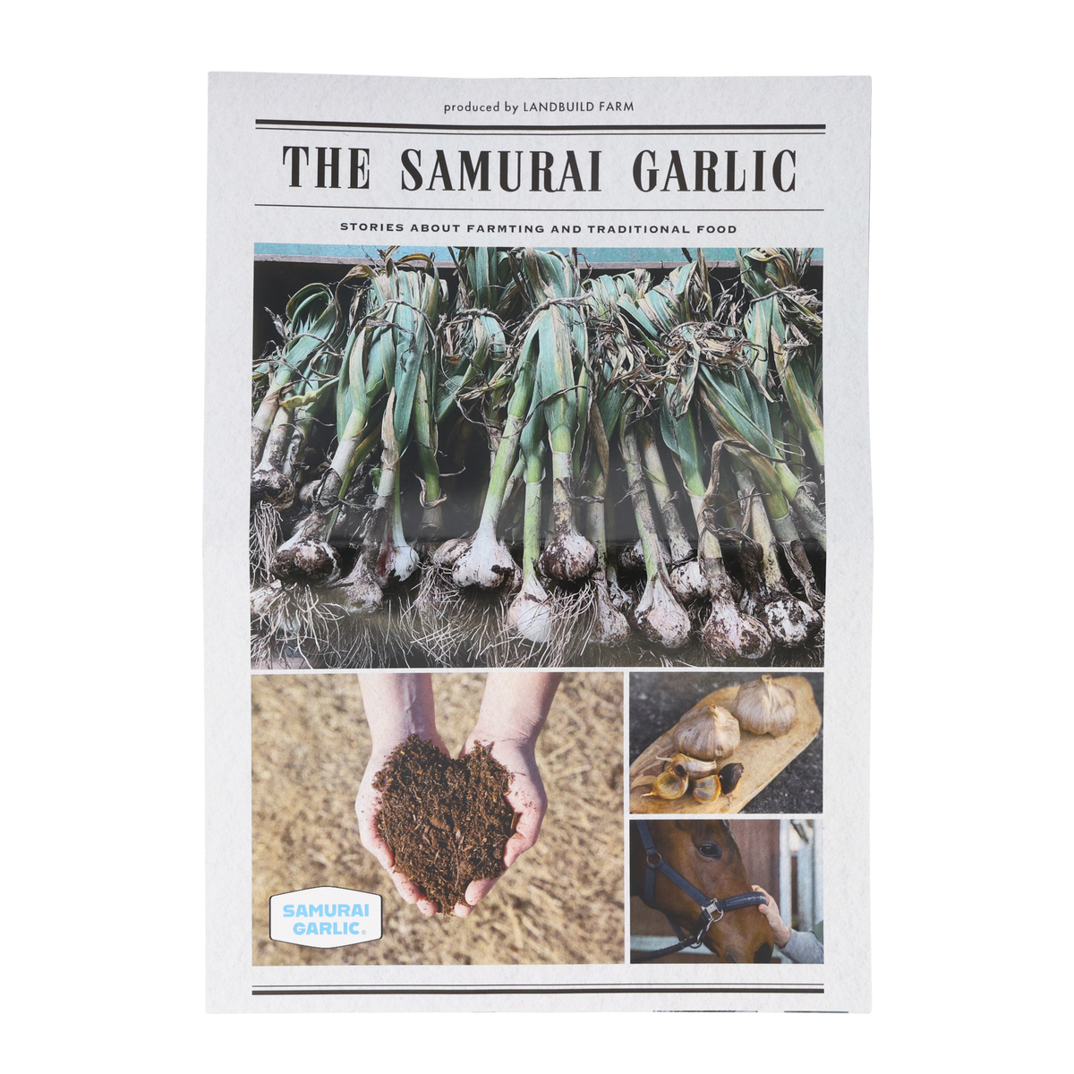 馬事文化が根強い浜通り相双地区。毎年5月に開催される相馬野馬追に参加する馬の堆肥を利用してニンニクを栽培していることから、サムライガーリックと名付けました。ニンニクの種類はニューホワイト6片種です