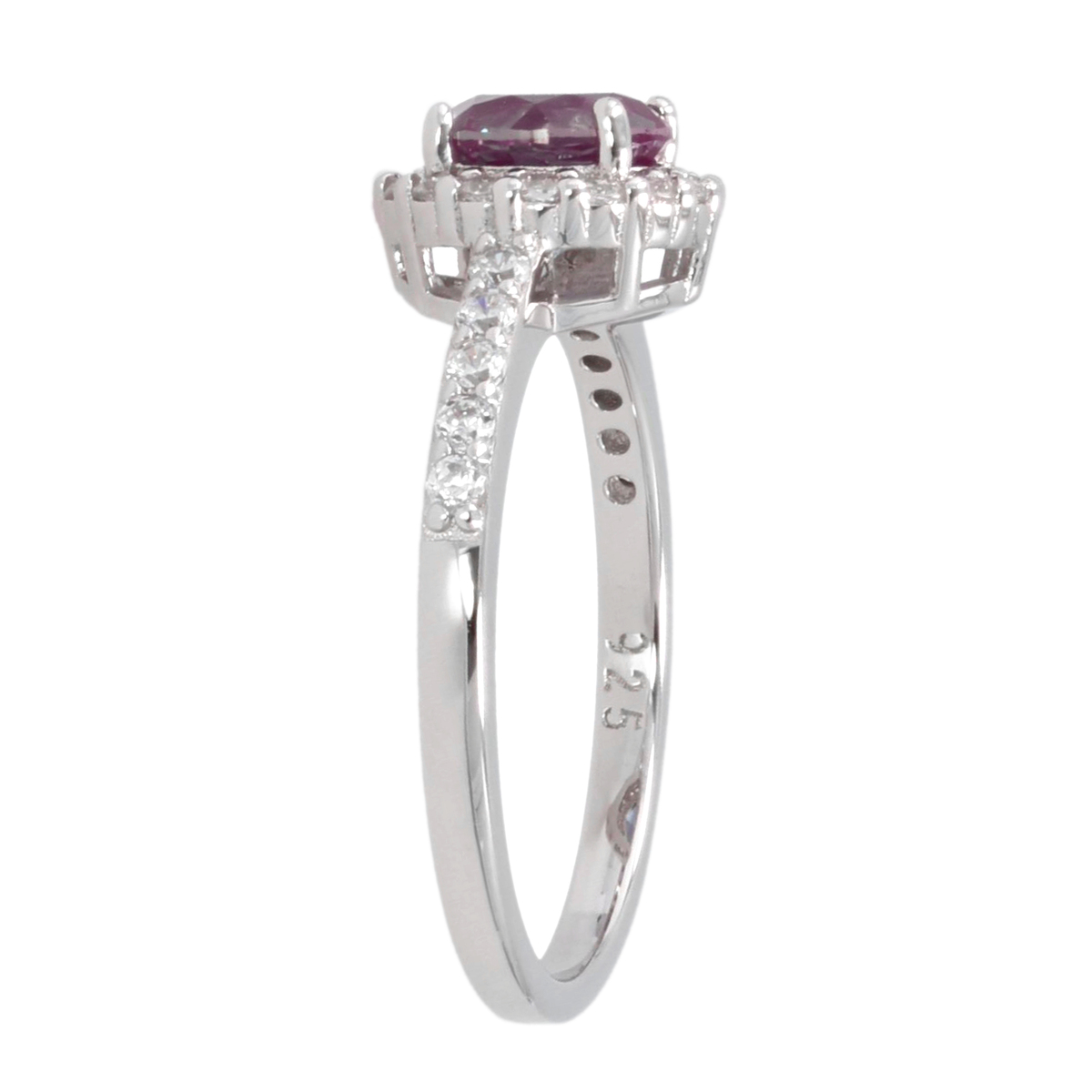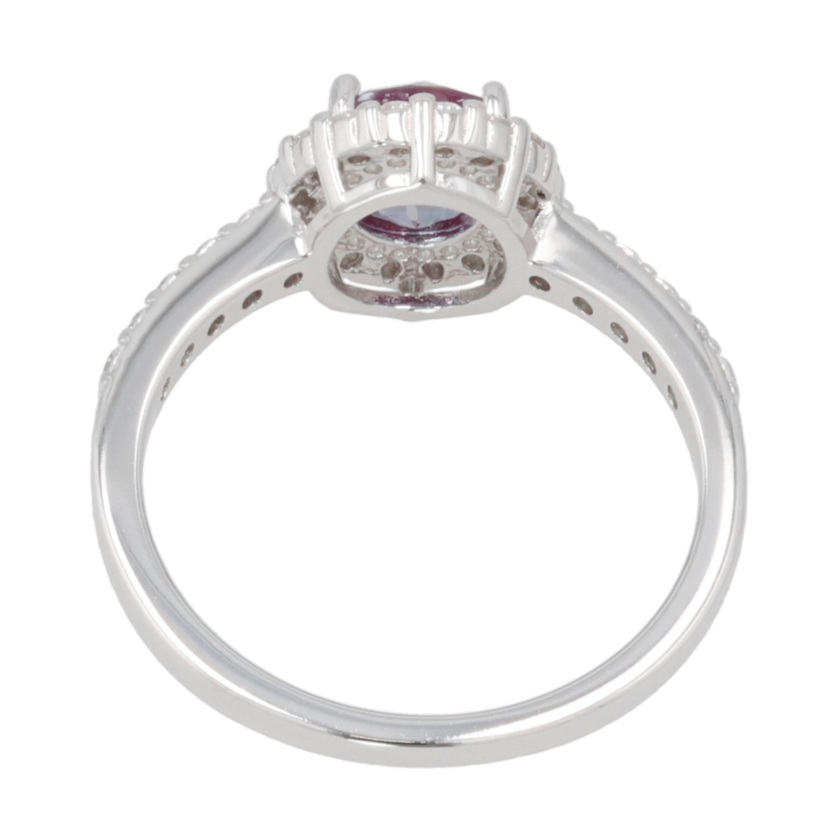 シンセティックアレキサンドライトをあしらったリング。キュービックジルコニアで取り巻き、メインストーンを引き立てています