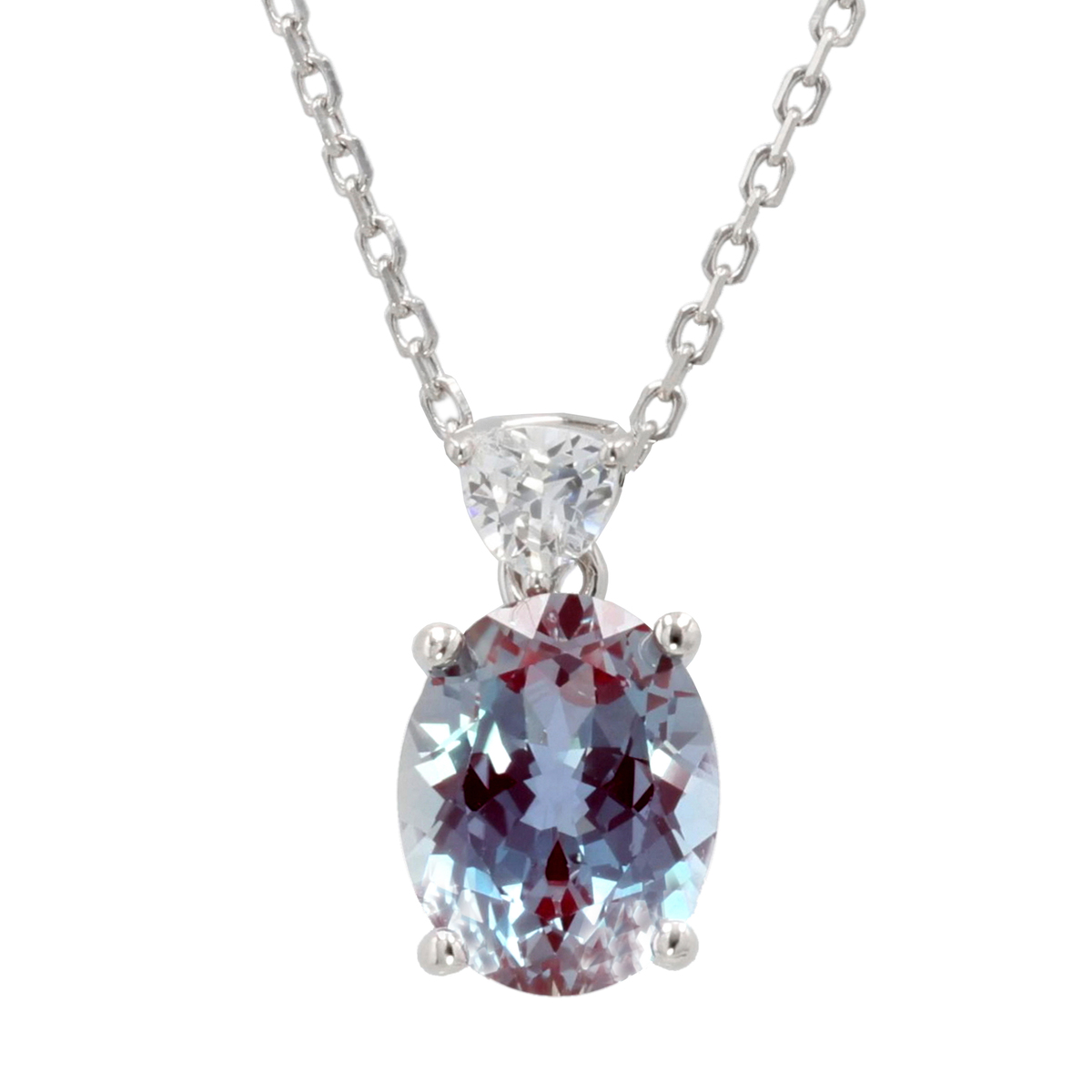 大粒のシンセティックアレキサンドライトをあしらったペンダント。バチカンにはキュービックジルコニアをあしらい、メインストーンを引き立てています