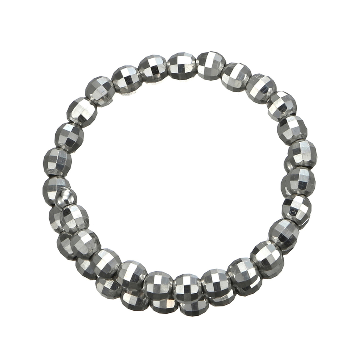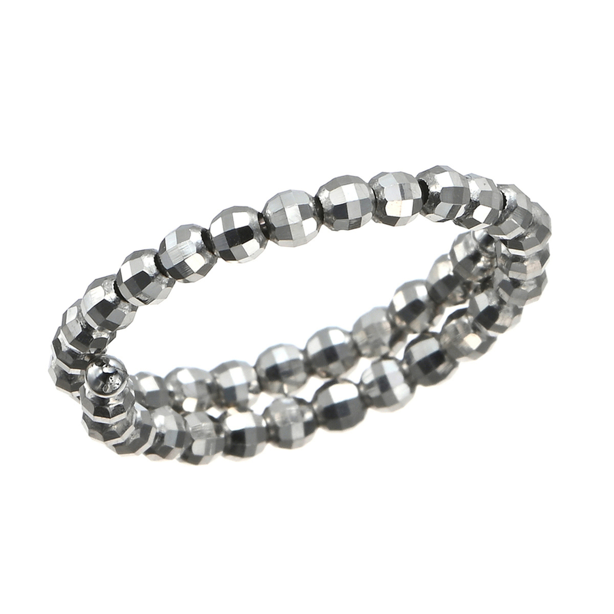 形状記憶合金に純プラチナのミラーボールを連装したフリーサイズリング。3〜11号対応のピンキーサイズで、お手持ちのリングとも相性よくお使いいただけます
