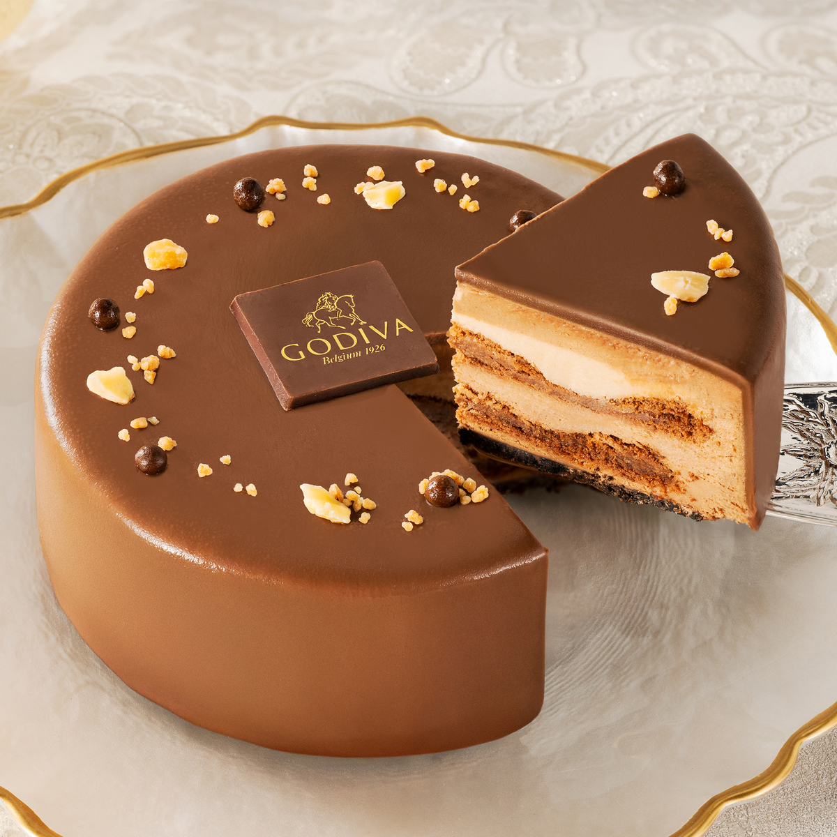 底面のサクサクとしたチョコレートレイヤーが食感のアクセントとなり、最後まで飽きのこない味わい。エレガントで絶妙なバランスを誇る、チョコレートの世界を堪能できる逸品です