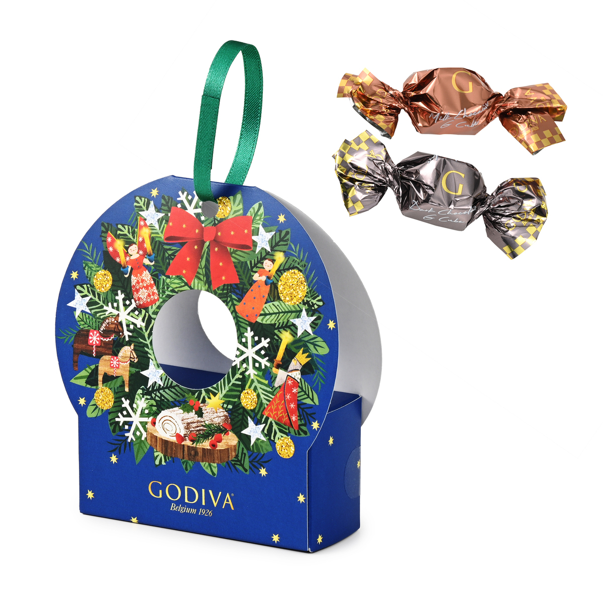 ミルクチョコレートガナッシュを包むミルクチョコレート、ダークガナッシュをコーティングしたダークチョコレートの2種入り。そのままツリーに飾っても楽しめます