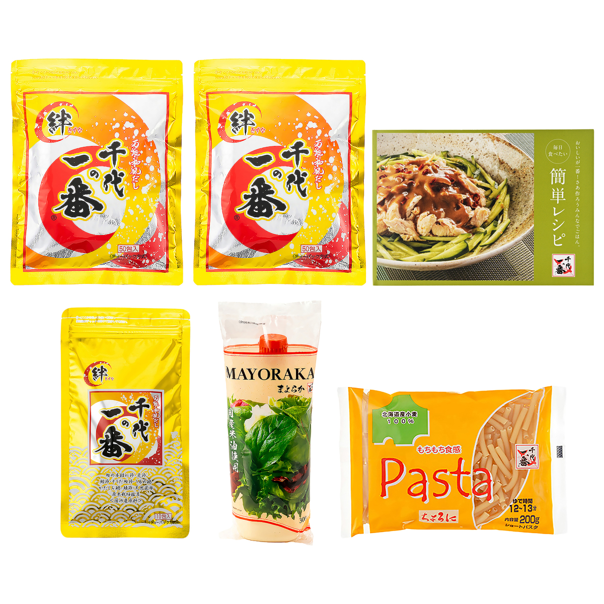 [アレルギー物質特定原材料8品目] 卵、小麦 [セット内容] ・QVC千代の一番50包【400g(8g×50包)】×2袋 ・QVC千代の一番10包【80g(8g×10包)】 ・毎日食べたい簡単レシピ1冊 ・まよらか300g ・ちよろに200g [保存方法] <開封前> 直射日光を避け、常温で保存してください <開封後> QVC千代の一番:開封後は必ず密封し冷蔵庫にて保存してください まよらか:開封後は中の空気を出してフタをかたくしめ、冷蔵庫(5℃〜10℃)に保存して、なるべく早くお召し上がりください ちよろに:直射日光及び湿気を避けて常温で保存してください [お召し上がり方] <QVC千代の一番> 1.600〜700mlの水を入れた鍋の中にだしパックを1包入れます 2.火をつけ沸騰したら、弱火にして5分間煮出します (だしパックが浮いてきますので、お玉の背でかるく2〜3回押して沈めます) 3.だしパックを取り出します(必ずしも取り出す必要はありません) ※ぬれた手でだしパックを触らないでください ※沸騰した鍋の上で袋の中からだしパックを取り出さないでください <ちよろに> 1.沸騰させたお湯に食塩を入れます。(パスタ100gあたり、水1L、食塩小さじ1) 2.沸騰した中にパスタを入れて12〜13分間ゆでてください。時々かき混ぜてください。差し水はしないでください 3.ゆであがったらすばやくざるなどにあけ、水気を切って調理してください [注意事項] <QVC千代の一番> ※だしパックが固まる場合がありますが、品質には問題ございません。ふりかけてご使用の場合は、かるくほぐしてご使用ください。 ※基本ベースの味付けはしてありますが、他の調味料はお好みにより適宜ご使用ください。 ※品質保持剤が入っておりますので召し上がらないように注意してください。 <まよらか> ※開封後は、中の空気を出してフタをかたくしめ、冷蔵庫(5℃〜10℃)に保存して、なるべく早くお召し上がりください ※冷凍不可 ※小さなキャップですのでお子様が誤ってお口に入れないようにご注意ください ※シールは完全にはがしてからご使用ください ※製品中の黒い粒は原料由来のものです <ちよろに> ※パスタの中の細かい斑点は小麦の皮の一部で異物ではありません ※調理の際は熱湯・吹きこぼれに十分ご注意ください [原料原産地] QVC千代の一番:食塩(国内製造) まよらか:米油(国内製造) ちよろに:小麦粉(国内製造) [原産国] 日本 [原材料] QVC千代の一番50包・10包: 風味原料(鰹節粉末、鮪節粉末、そうだ鰹節粉末、鰹エキス、うるめ鰯粉末、かたくち鰯粉末、鯖節粉末、昆布粉末、椎茸粉末、昆布エキス)、食塩(国内製造)、砂糖(甜菜糖、甜菜オリゴ糖)、酵母エキス(酵母エキス、でん粉分解物)、粉末醤油、(一部に小麦・さば・大豆を含む) まよらか(マヨネーズ風): 米油(国内製造)、卵、りんご酢、食塩、野菜ブイヨンパウダー、香辛料、(一部に卵・小麦・大豆・りんごを含む) ちよろに(マカロニ): 小麦粉(国内製造)