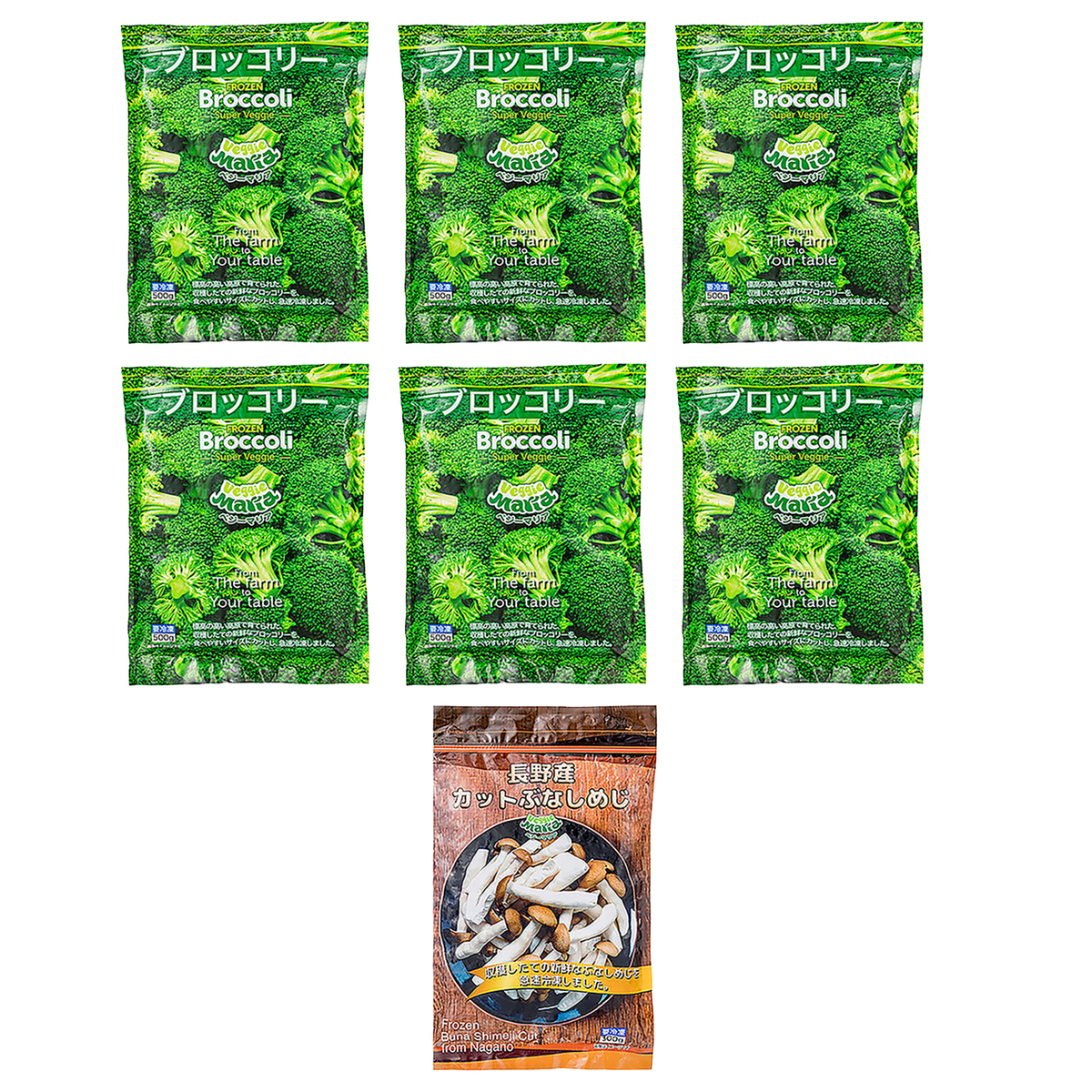 [アレルギー物質特定原材料8品目] なし [商品内容] ・ブロッコリー500g×6袋 ・ぶなしめじ300g [保存方法] 開封前:冷凍(ー18℃以下)で保存してください 開封後:開封後はお早めにお召上がりください [お召し上がり方] <ブロッコリー> 電子レンジの場合: 凍ったままの本品を皿にのせ、ラップをかけて下記の時間を目安に加熱してください ※機種によっては加熱時間は多少異なります ※調理後は、かなり熱くなっておりますので、ラップを取り除く際はどは、やけどに十分御注意ください <加熱時間の目安> 500W 600W 100g 約2分30秒 約2分 150g 約3分 約2分30秒 ボイルする場合: 熱湯の中に、凍ったままの商品を適量入れて、サッとゆでてください ※温めすぎは調理不良の原因となります 炒める場合: フライパンにバター等をとかし、凍ったままの商品を適量入れて、強火で炒めてください ※油がはねることがあります <ぶなしめじ> 加熱してお召上がりください。調理中にやけどにご注意ください [注意事項] <ブロッコリー> ※再凍結はお避けください ※解凍後はすぐにご使用ください ※いったん凍結したものを再び凍らせますと、品質が変わることがありますので再凍結は避けて早めにお召し上がりください <ぶなしめじ> ※本商品は加熱調理してありません ※調理時のやけどにご注意ください ※解凍後の再凍結はお止めください ※電子レンジで加熱する場合は袋から出してから加熱してください ※個体差があるため大きさにバラつきがあります。ご容赦ください [原料原産地] ぶなしめじ(長野県) [原産国] ブロッコリー:エクアドル ぶなしめじ:日本 [原材料] ブロッコリー:ブロッコリー ぶなしめじ:ぶなしめじ ※原料原産地:長野県