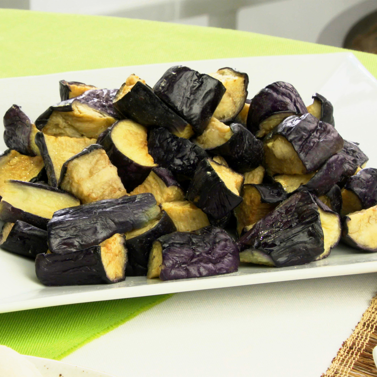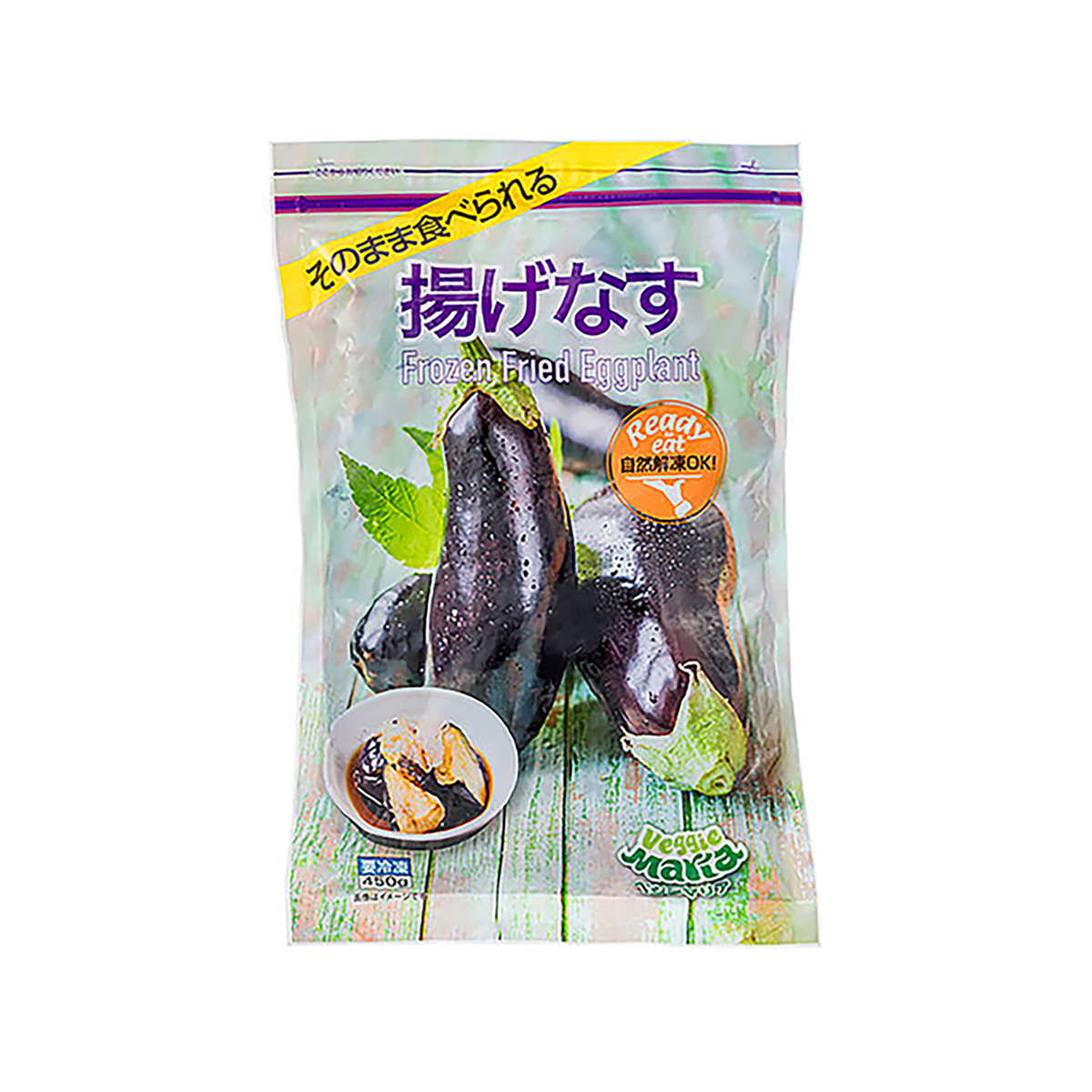 ベトナム産のナスを乱切りにカットして油で揚げました。食塩不使用で製造。加熱の必要はなく、解凍してそのまま食べられます。450gの製品化にあたり約90gのナスを11本以上使用しています