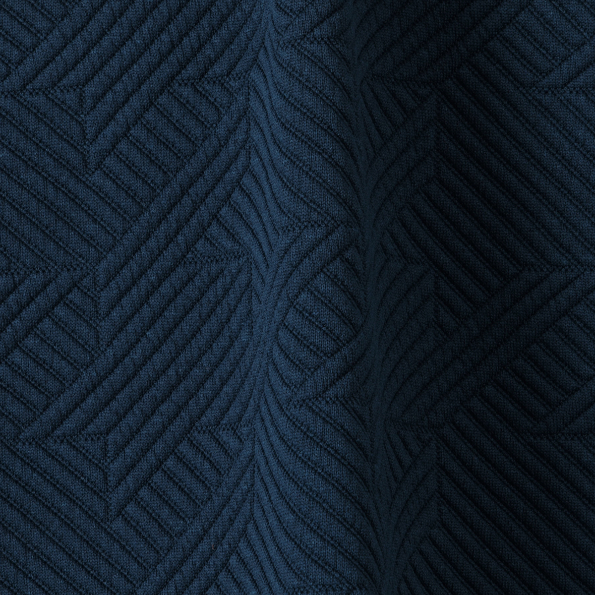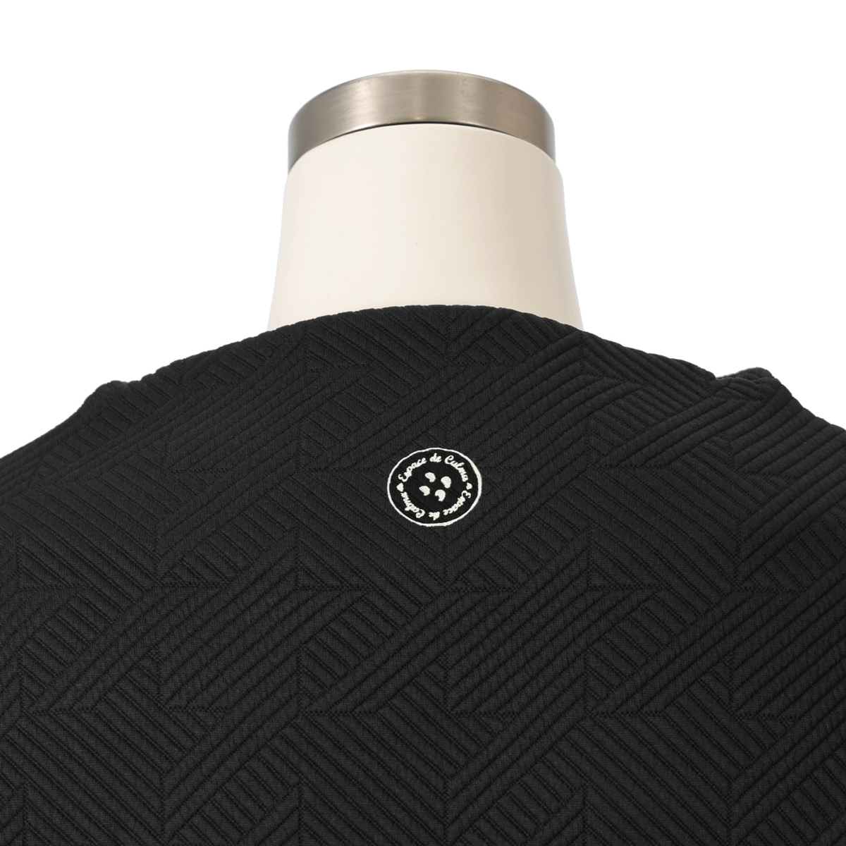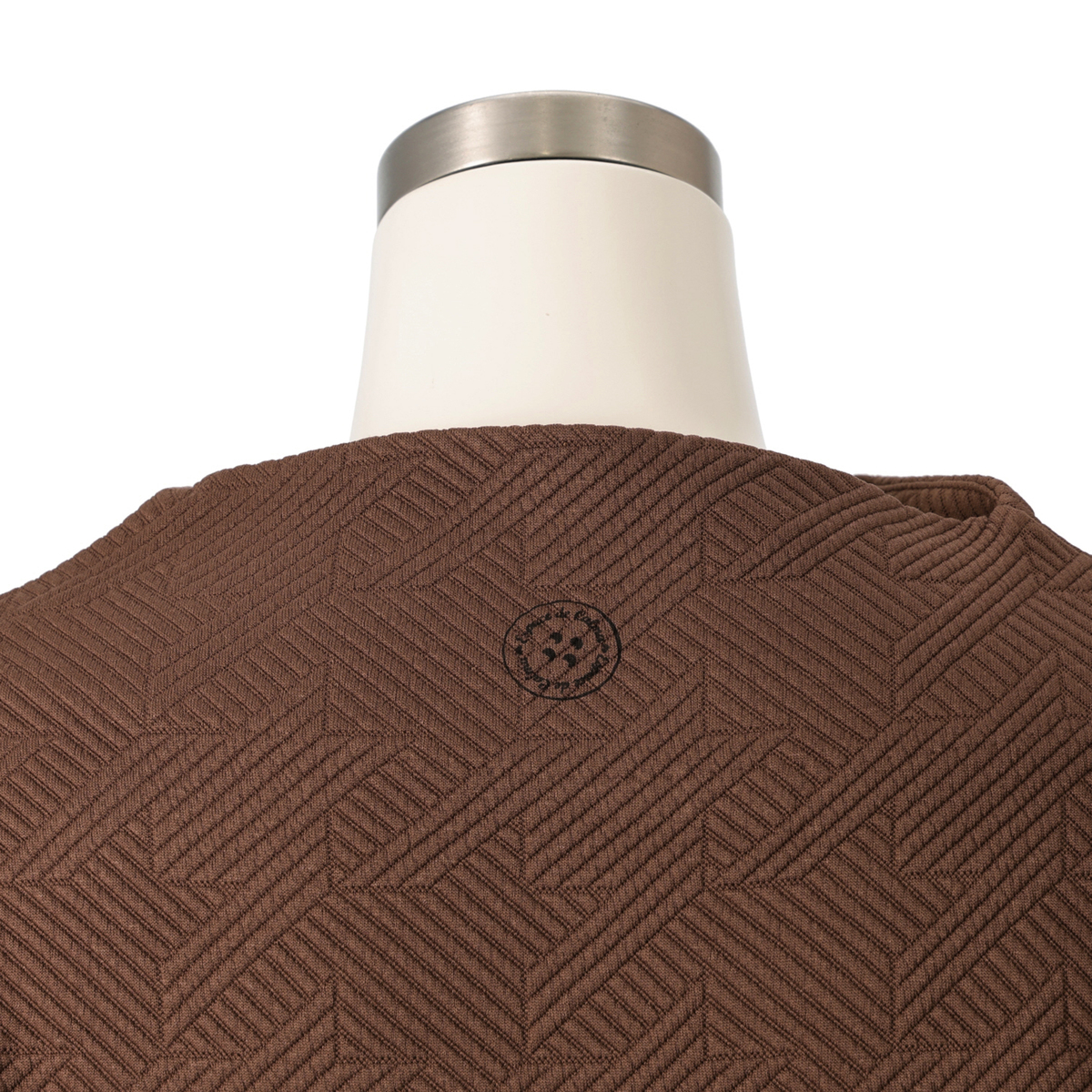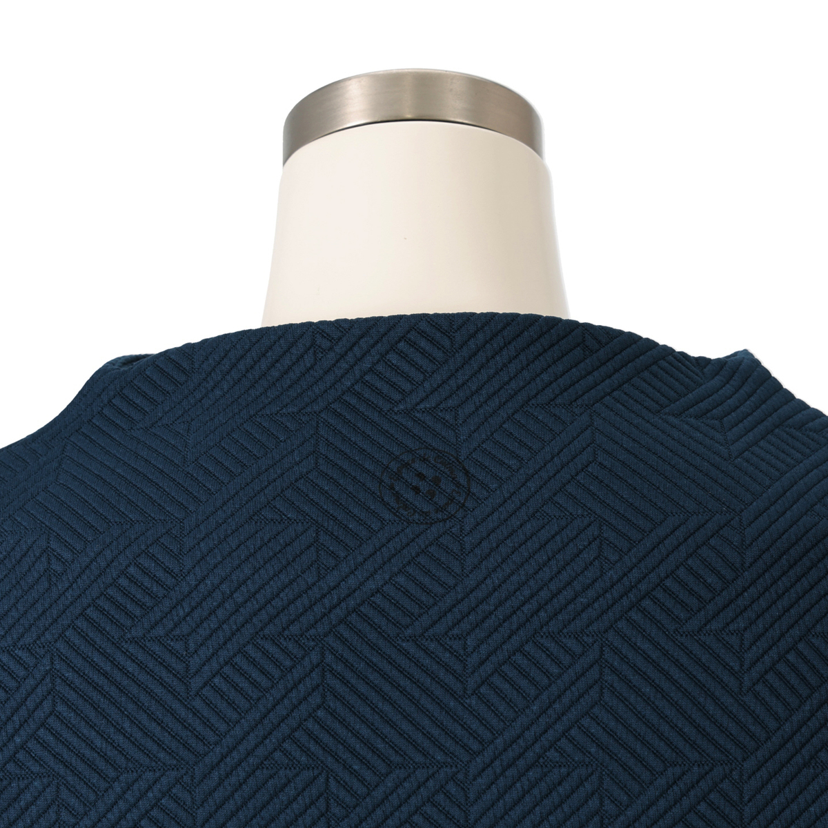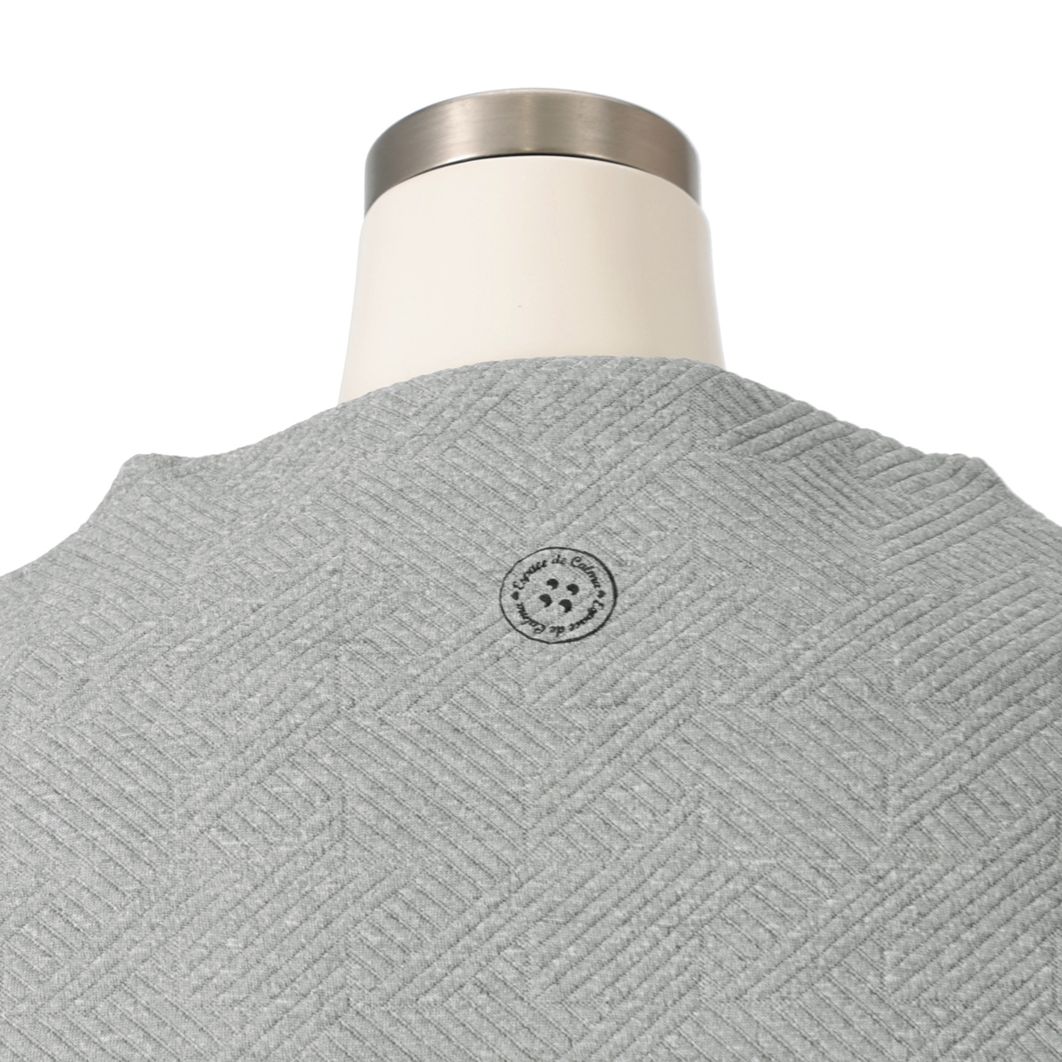 ジオメトリックな凹凸感が特徴のふくれジャガードのプルオーバー。身体のラインを拾いにくい反発感のある生地です