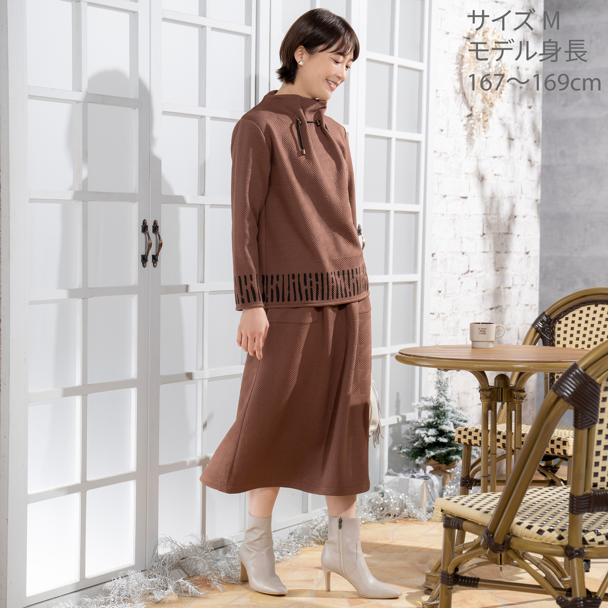 [商品寸法(ヌード)cm] サイズ バスト 着丈 S : 93(73〜81) 65 M : 98(78〜86) 65 L : 103(83〜91) 67 LL : 109(89〜97) 67 3L : 115(95〜103) 67 サイズ 肩幅 袖丈 S : 40 54 M : 42 54 L : 43 55 LL : 44 55 3L : 46 55 [素材] ポリエステル95% ポリウレタン5% [お手入れ] 洗濯機洗い可 [注意事項] ※商品寸法の誤差は多少発生します。ご了承下さい ※淡色製品には蛍光増白剤入り洗剤を使用しないで下さい ※洗濯後はすぐに脱水し、形を整えて干して下さい。長時間、水につけたままにしないで下さい ※濃色製品は着用中の摩擦により色移りすることがあります。また、雨や汗等で濡れた状態で着用すると色移りすることがあります。その際はお早めに洗濯をして下さい ※プリント部分を擦ったり、揉んだりしないで下さい ※プリントは強く力を加えたり、洗濯すると脱落することがあります ※アイロン時にはあて布を使用して下さい ※装飾部分にはアイロンを当てないで下さい ※洗濯ネットを必ず使用して下さい ※洗濯の際、色落ちすることがありますので、他の物と分けて洗って下さい ※この製品は、光により退色しやすいので太陽光や蛍光灯等が長時間当たる所で保管しないで下さい ※着用時にベルトやバッグ、周囲の壁など、表面の粗いものとの摩擦や引っかかりに注意して下さい ※この製品のプリントは永久的なものではありません。着用や洗濯により、脱落しやすくなります 【中国製】