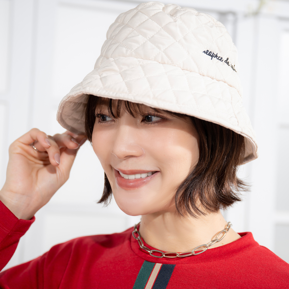 キルト仕立てが特徴のバケットハット。バケツのようなフォルムで、コーディネートに取り入れるだけでこなれた印象に。汗帯部分にはサイズ調整ひもを備え、結ぶことで頭周りをフィットさせられる仕様です