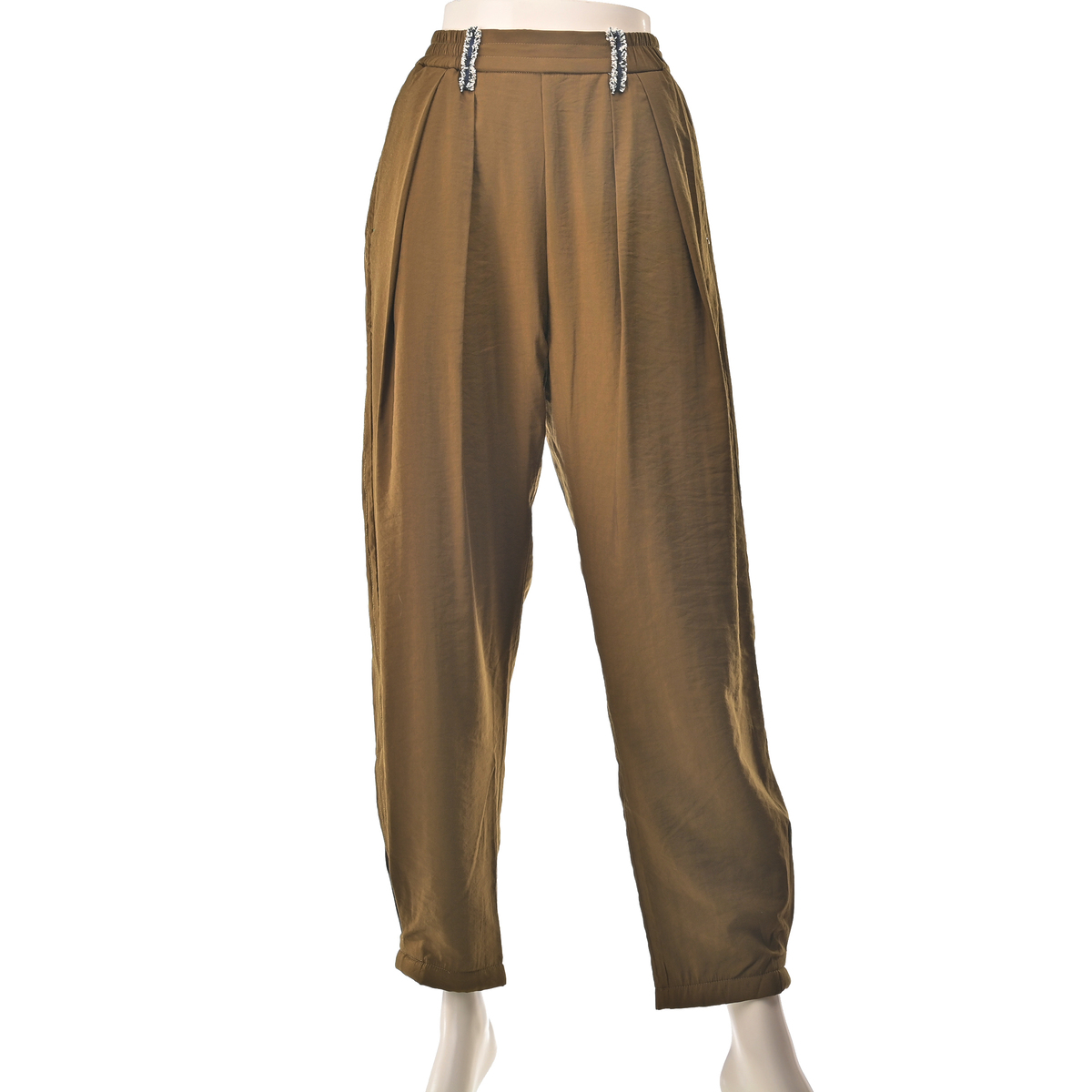 No. 750290 calma シアーレイヤード暖か裏フリース 裾タックパンツ