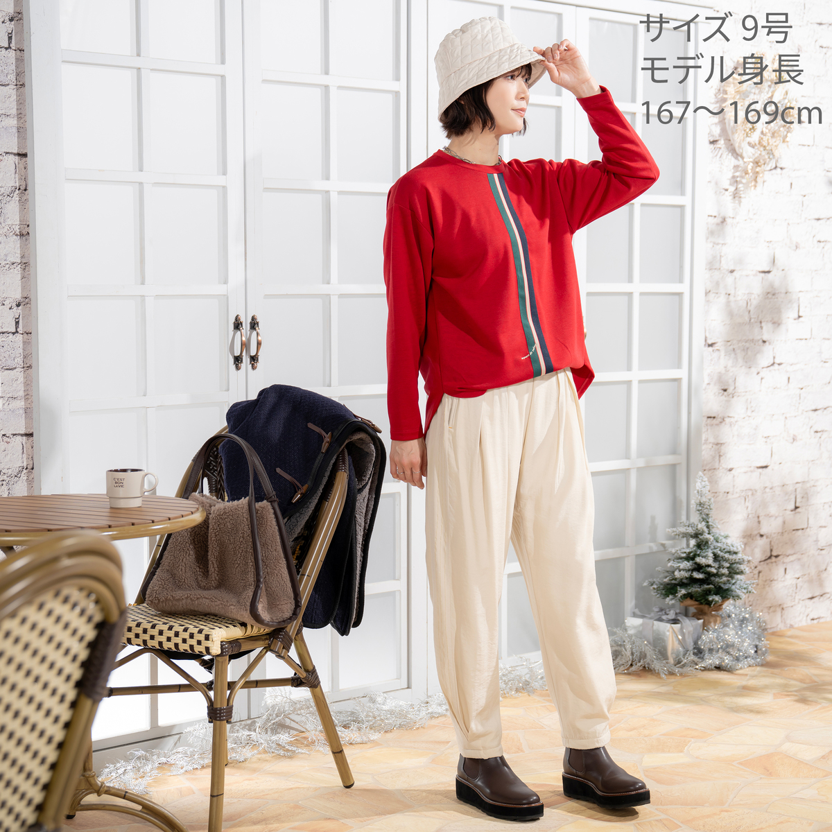 No. 750290 calma シアーレイヤード暖か裏フリース 裾タックパンツ