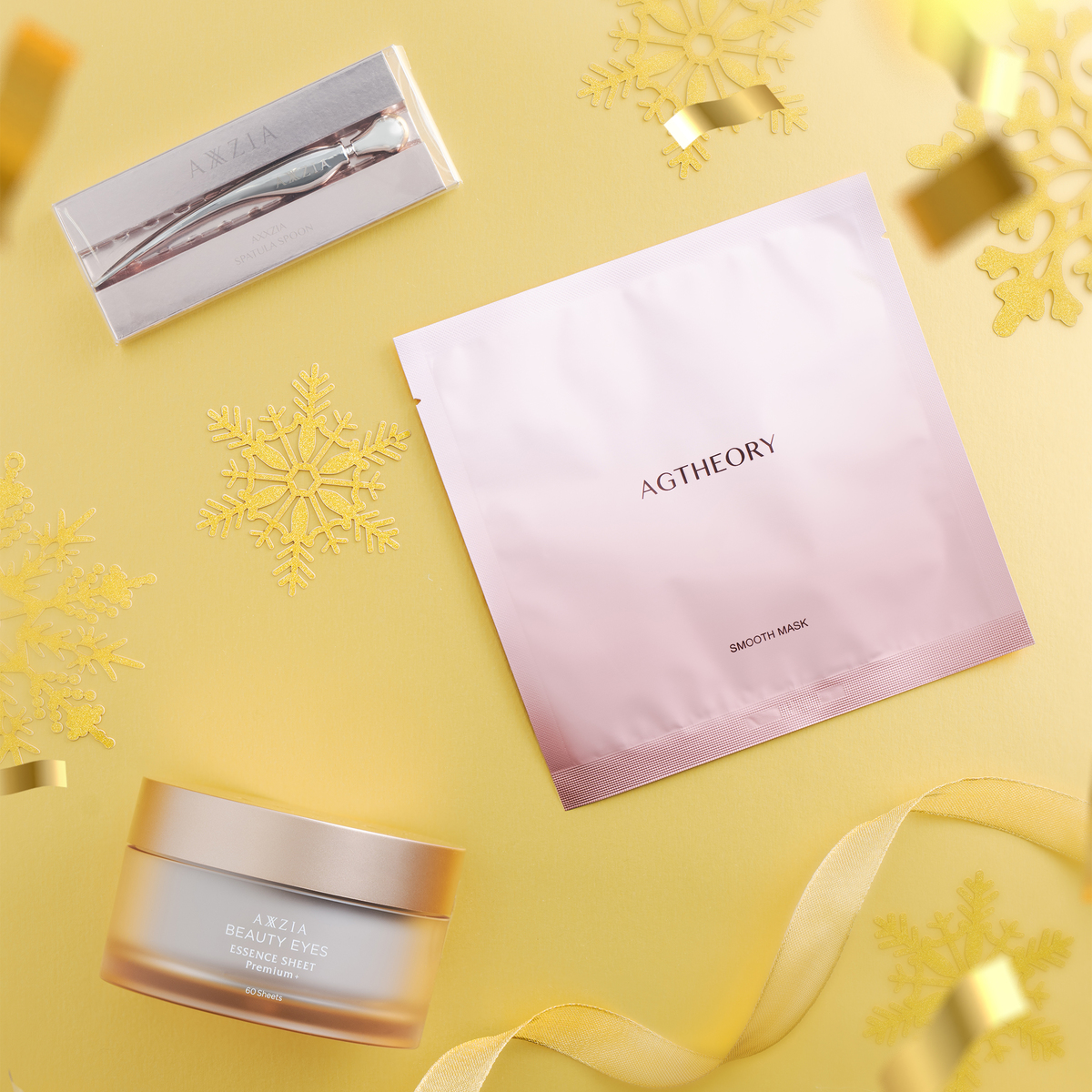 [セット内容] ・アクシージア ビューティーアイズ エッセンスシート プレミアム プラス 316g(60枚) <プレゼント> ・エイジーセオリースムースマスク×1枚 ・スパチュラスプーン×1 [使用方法] ビューティーアイズ エッセンスシート プレミアム プラス:ピンセットで1枚ずつ取り、シートを両方の目の下に10分〜15分ほど密着させます。シートをはがした後、目もとまわりに残る美容液は、周囲にやさしくのばすようになじませてください エイジーセオリースムースマスク:シートを取り出し10〜15分ほど肌に密着させます。シートをはがした後、肌に残る美容液は、やさしくなじませてください [注意事項] ※肌に異常が生じていないかよく注意して使用してください ※肌に合わないときは、使用をおやめください ※目に入らないように注意し、入ったときや異常を感じたときはすぐに洗い流してください。異常が残る場合は眼科医へご相談ください ※肌に異常が生じていないかよく注意して使用してください。また肌に合わないとき、即ち次のような場合は使用を中止し、皮フ科専門医等にご相談ください (1)使用中、赤み、はれ、かゆみ、刺激、色抜け(白斑等)や黒ずみ等の異常があらわれた場合。 (2)使用した肌に、直射日光があたって上記のような異常があらわれた場合 ※傷やはれ物、湿疹等、異常のある部位にはお使いにならないでください。 ※一度出したものは、容器に戻さないでください ※使用後はしっかりとキャップを閉めてください ※ピンセットの先端が尖っていますので、取り扱いにご注意ください ※高温多湿、直射日光を避けて、乳幼児の手の届かない場所に保管してください 【日本製】 [成分] ビューティーアイズ エッセンスシート プレミアム プラス:水、PG、グリセリン、ペンチレングリコール、アスパラギン酸Mg、グルコン酸亜鉛、グルコン酸銅、ツボクサエキス、アイブライトエキス、スイカズラ花エキス、カミツレ花エキス、ローズマリー葉エキス、サンザシエキス、アセチルヘキサペプチド-1、アボカド油、アンズ核油、カニナバラ果実油、ヒマワリ種子油、ベタイン、アスコルビルグルコシド、グリチルリチン酸2K、ヒアルロン酸Na、加水分解ヒアルロン酸、 加水分解コラーゲン、加水分解エラスチン、トコフェロール、ナットウガム、カルボマー、水酸化K、BG、PPG-6デシルテトラデセス-30、1,2-ヘキサンジオール、EDTA-2Na、フェノキシエタノール、エタノール、香料 エイジーセオリースムースマスク:水、BG、プロパンジオール、DPG、ロドデンドロンフェルギネウムエキス、セイヨウトチノキ種子エキス、セイヨウオオバコ種子エキス、ユキノシタエキス、ドクダミエキス、サンザシエキス、ブドウ果実エキス、ローマカミツレ花エキス、マグワ根皮エキス、ザクロ果皮エキス、ウメ果実エキス、セージ葉エキス、ウイキョウ果実油、アスコルビルグルコシド、トコフェリルリン酸Na、 水溶性コラーゲン、加水分解コラーゲン、ヒアルロン酸Na、加水分解ヒアルロン酸、グリチルリチン酸2K、加水分解水添デンプン、グリコシルトレハロース、トレハロース、グリセリン、グリセリルグルコシド、シクロヘキサン-1,4-ジカルボン酸ビスエトキシジグリコール、クエン酸、クエン酸Na、カルボマー、プルラン、キサンタンガム、PEG-60水添ヒマシ油、トリ(カプリル酸/カプリン酸)グリセリル、ペンチレングリコール、エチルヘキシルグリセリン、水酸化K、EDTA-2Na、フェノキシエタノール、香料