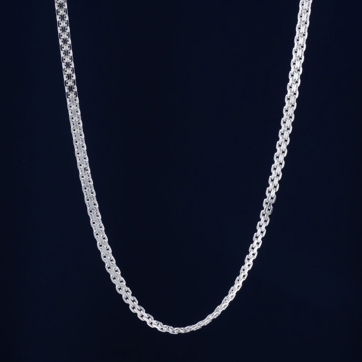 アズキチェーンを2列に並べ溶接し、フラットでボリューム感のある幅広なチェーンに仕上げました