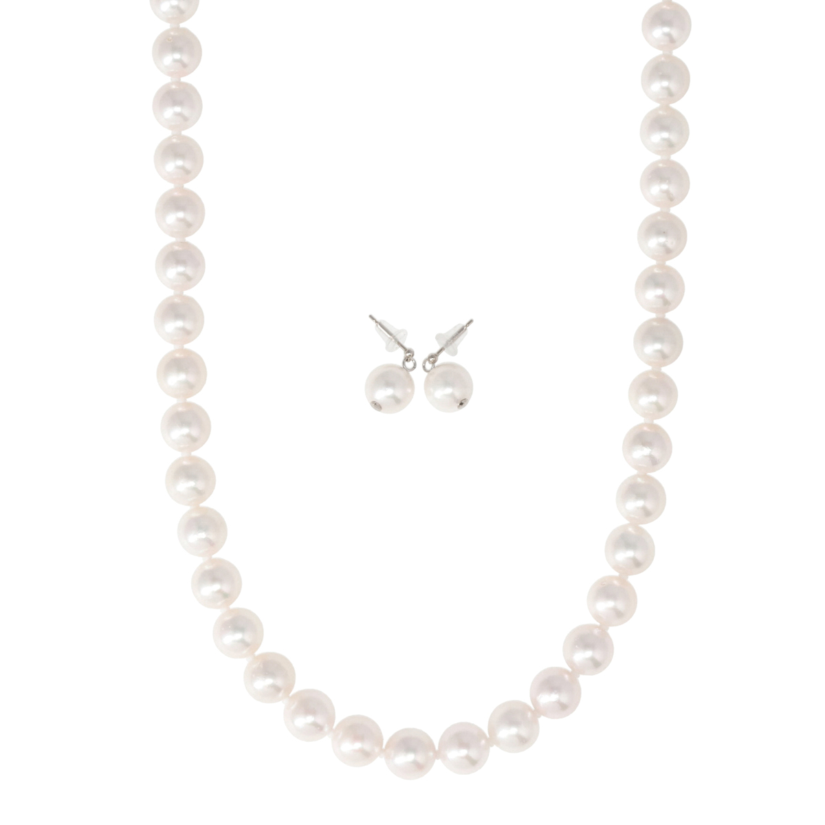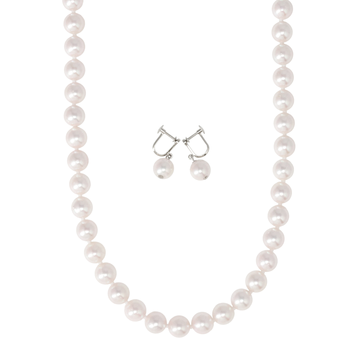 素材:<ネックレス> [アコヤ真珠] 9.0mmUP ラウンド 貫通 <イヤリング・ピアス> [アコヤ真珠] 9.0mmUP ラウンド 芯立て 接着 2珠 [地金] ネックレス:シルバー イヤリング・ピアス:シルバー925 [メッキ] シルバーカラーメッキ <ネックレス> 総重量(約) 44.1g 長さ(約) 43.0cm 幅(約) 9.0mm 留具の形状 差し込み式 アジャスターの有無 無 <イヤリング> 縦×横(約) 20.0×9.0mm 総重量(約) 2.8g 留具の形状 スクリュー <ピアス> 縦×横(約) 14.5×9.0 mm 総重量(約) 2.2 g 留具の形状 ポスト&シリコンキャッチ [付属品] 鑑別書 ■素材の大きさ・形・色合い、製品のサイズは1点1点多少異なります ■専用ケース付 【日本製】