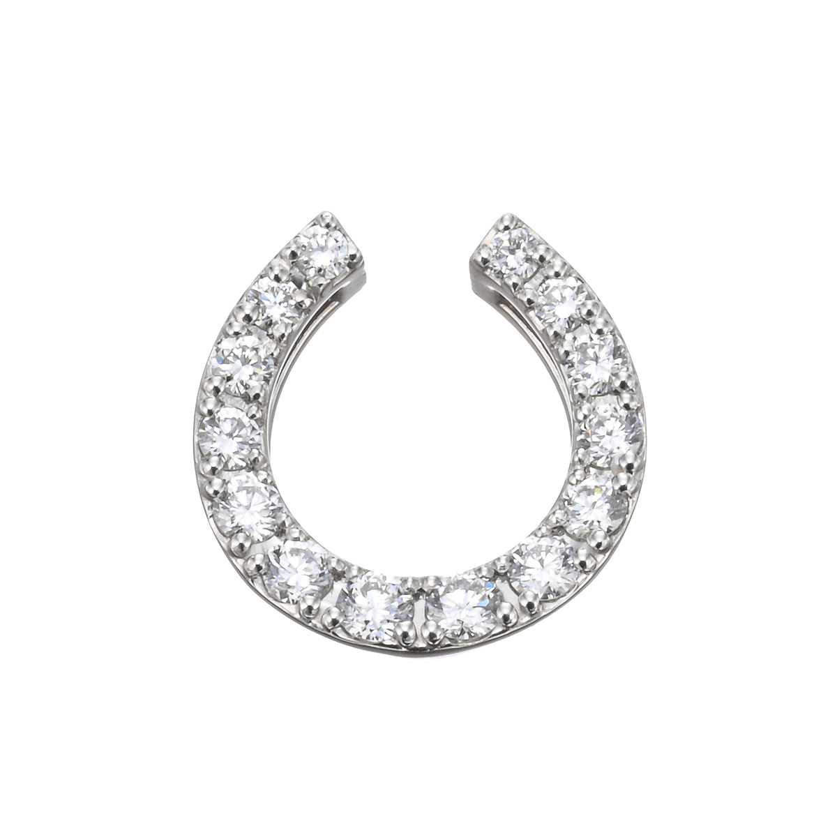 幸運を呼ぶとされる、馬蹄モチーフのペンダントヘッド。ラウンドシェイプのダイヤモンドをセッティングしました。地金にはプラチナを使用しています
