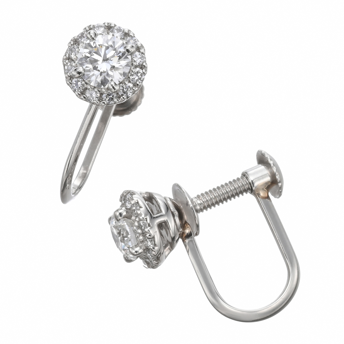 素材:[ダイヤモンド] <中石> ラウンドシェイプ 爪留め 2石 (カラー:F UP/クラリティ:VS UP) <脇石> ラウンドシェイプ 爪留め 24石 26石合計0.30ctUP [地金] プラチナ950(本体)、プラチナ900(イヤリング留め具、ピアスポスト・キャッチ) <イヤリング> 縦×横(約) 5.5×5.5mm(金具含まず) 総重量(約) 1.7g 留具の形状 スクリュー <ピアス> 縦×横(約) 5.5×5.5mm(金具含まず) 総重量(約) 1.2g 留具の形状 ポスト&キャッチ(シリコン付) [付属品] ナミビア産ギャランティカード / ライトパフォーマンスカード、ソーティング ■受注発注商品のためデザイン・価値に影響のない範囲で仕様が変わる場合がございます ■素材の大きさ・形・色合い、製品のサイズは1点1点多少異なります 【日本製】