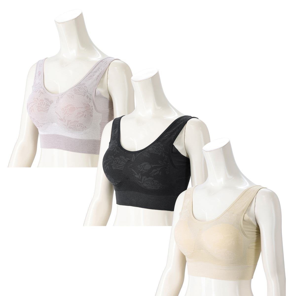 No. 750333 杉原杏璃のバラ柄綿混補正ノンワイヤーブラ3枚組