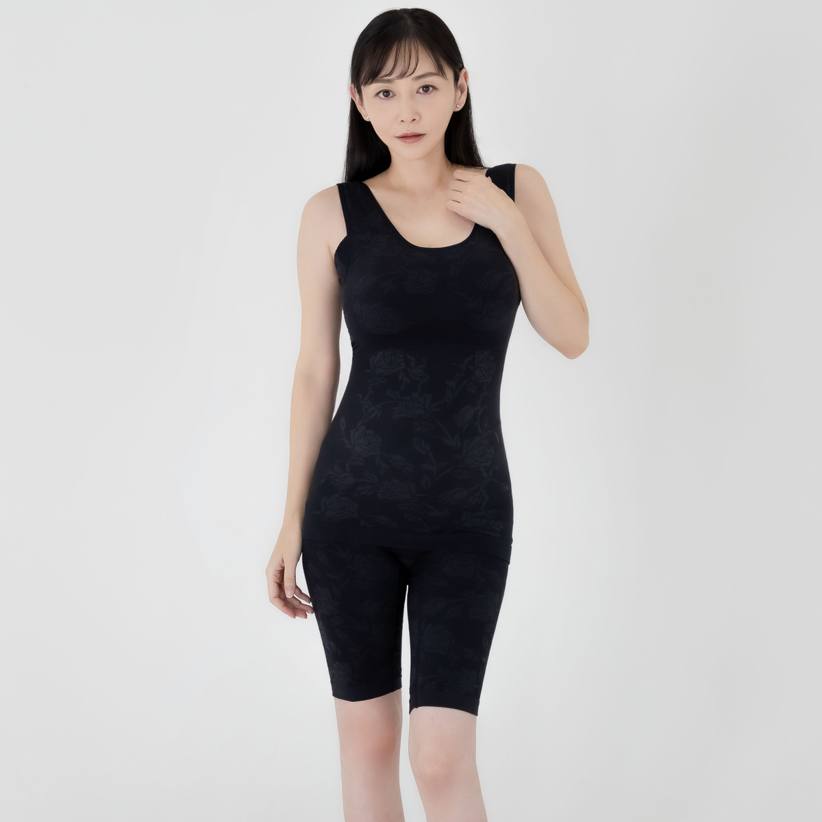 No. 750335 杉原杏璃のバラ柄綿混補正ノンワイヤーブラキャミ