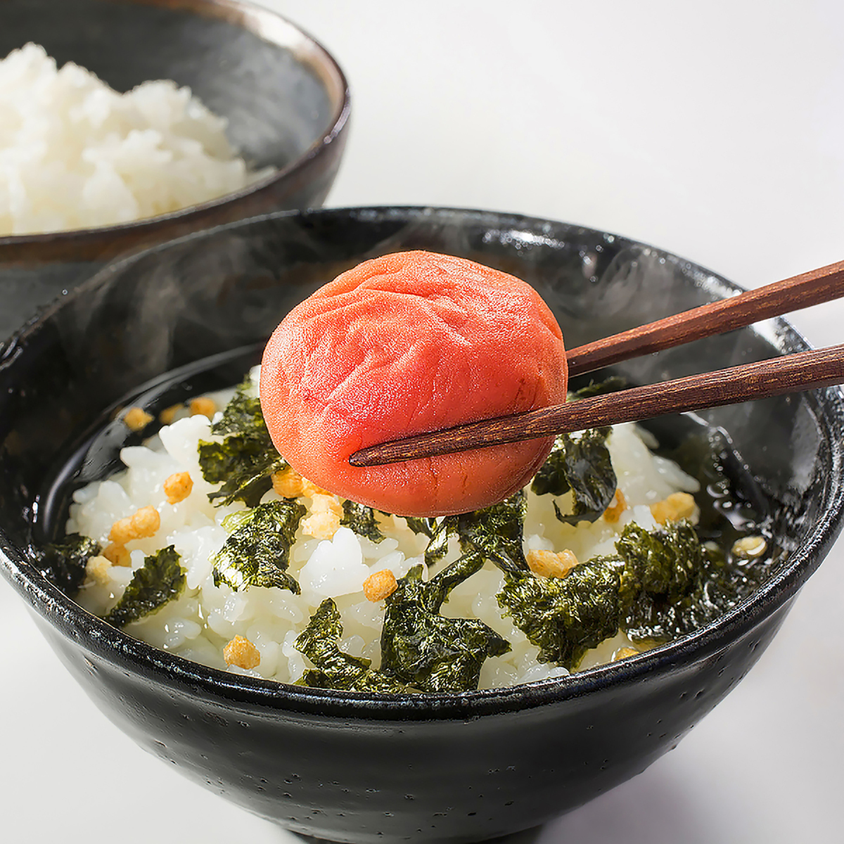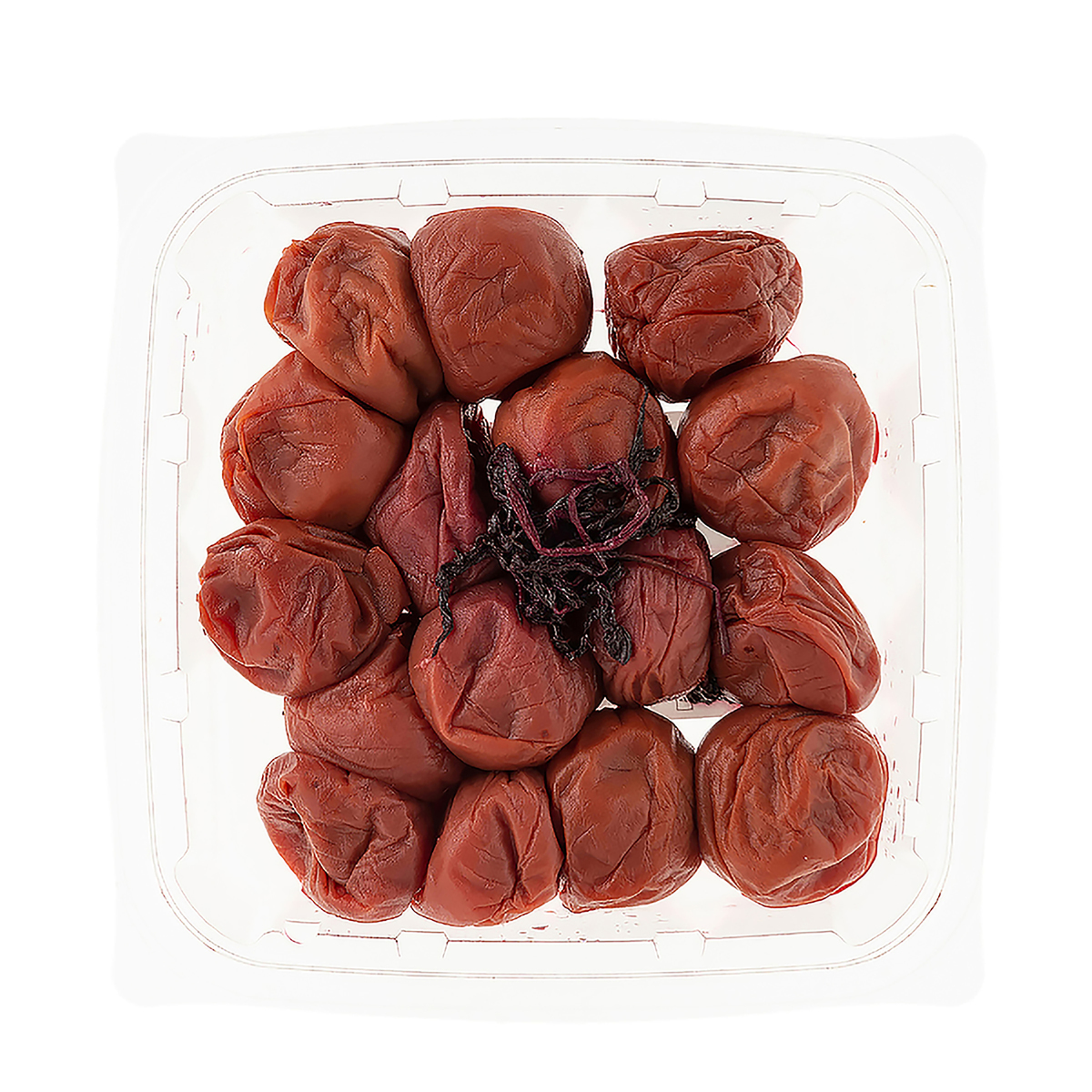 メーカー基準で2Lサイズ以上の大粒の南高梅を、しそのさわやかな風味を活かし、昆布と煮干しの旨みを入れてさっぱりお召し上がりいただけるように仕上げました。梅の持つ程よい酸味を活かしながら、酸っぱすぎずバランスの良いシンプルな味付けに。また、塩分は約8%です
