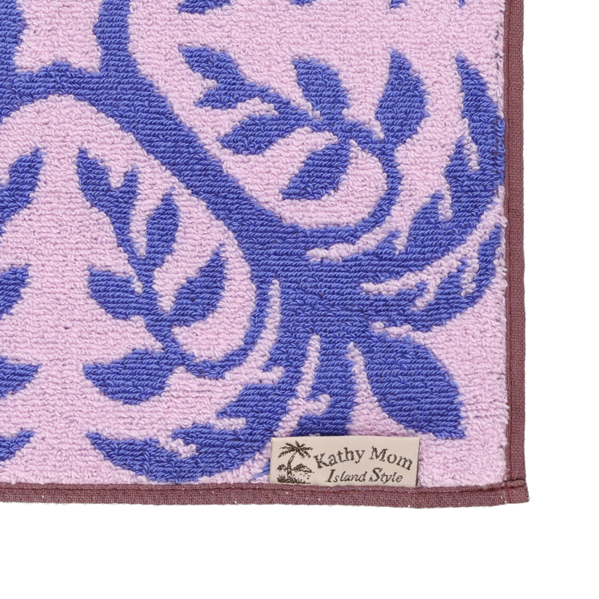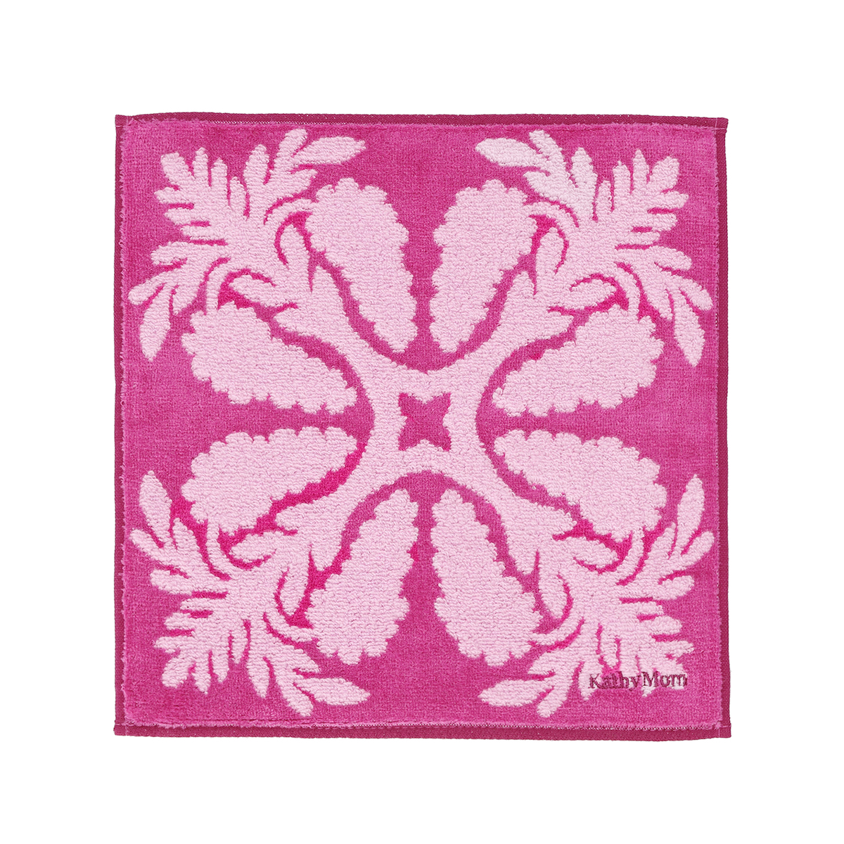 ハワイアンキルト作家 キャシー中島さんプロデュース「キャシーマム アイランドスタイル」から、美しいミニタオルをお届け。柄の部分は無撚糸を使用したループ状で、柄を鮮やかに表現。フワフワとした肌触りをお楽しみいただけます。グランド部分はシャーリングカットされ、凹凸感のある仕上がりです