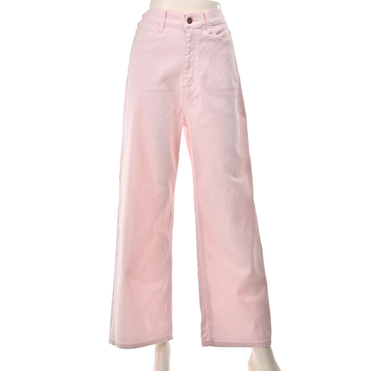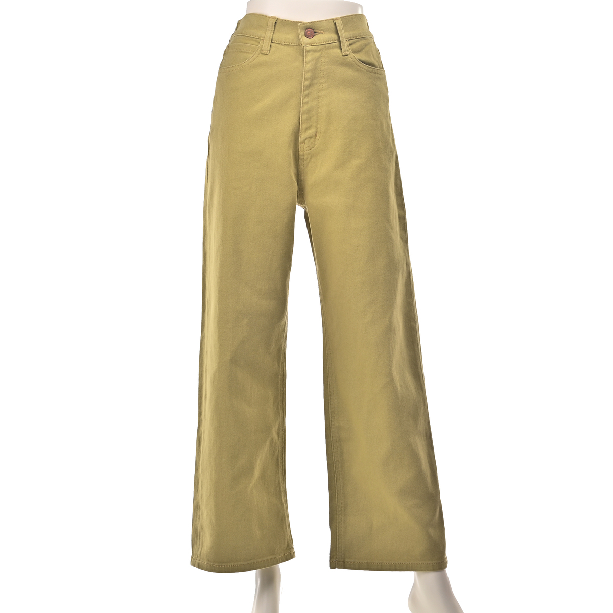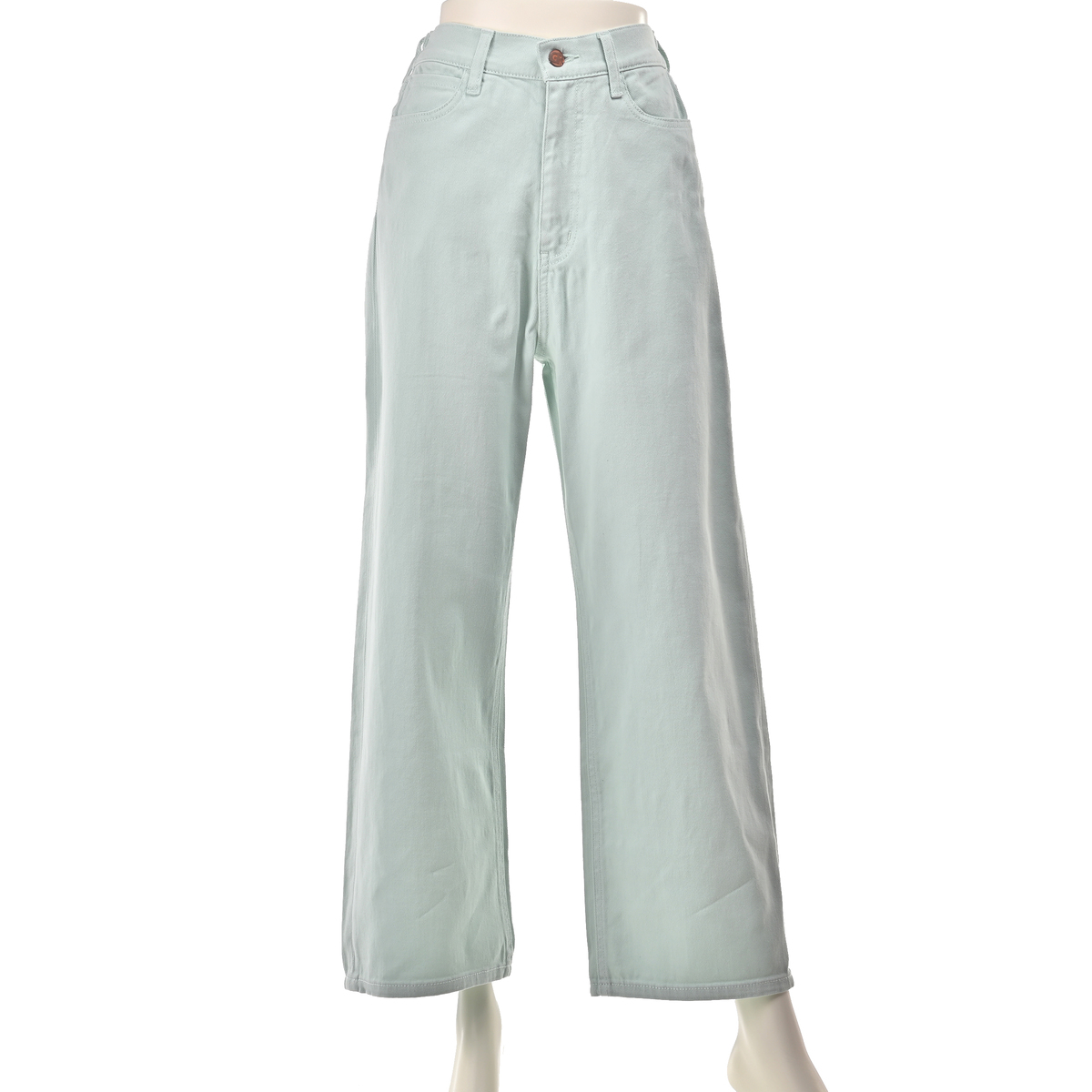 脚のラインを拾いにくいセミワイドシルエットのカラーデニムパンツ。有名デニムブランドの加工もしている世界有数のデニム加工工場、SAAB社で一貫して縫製、加工を施しました