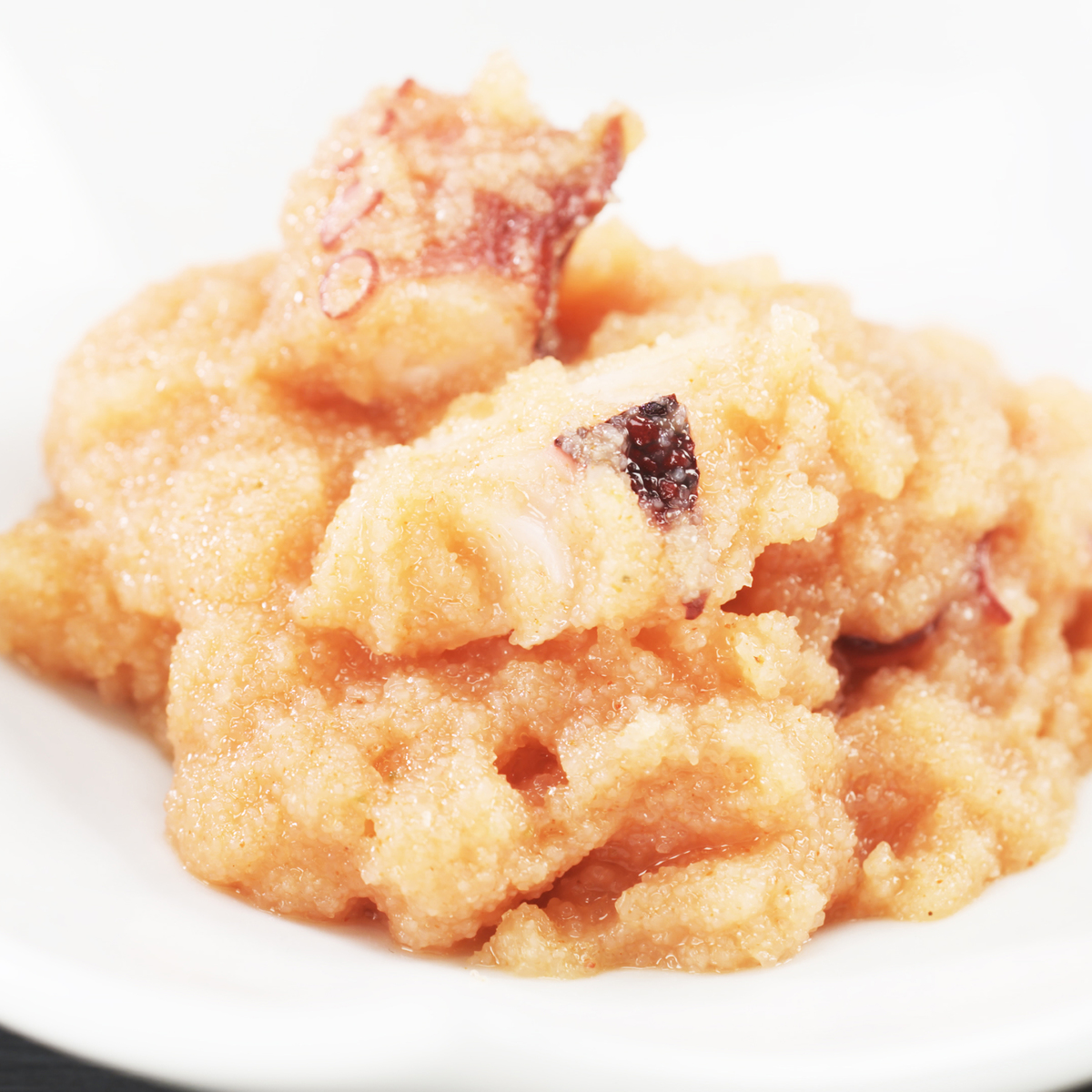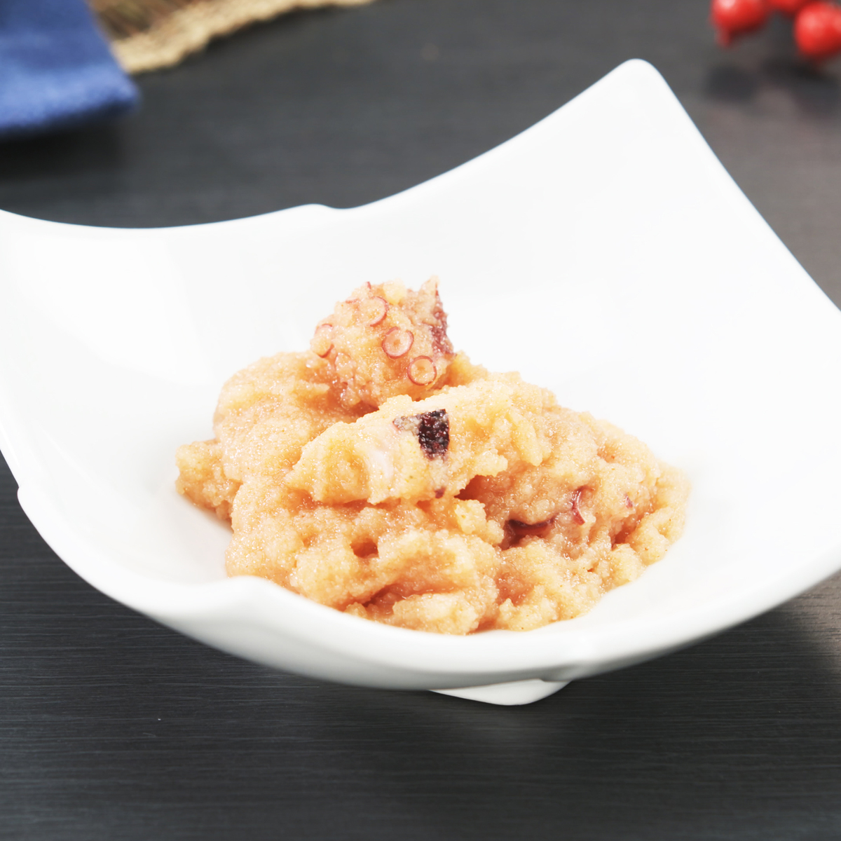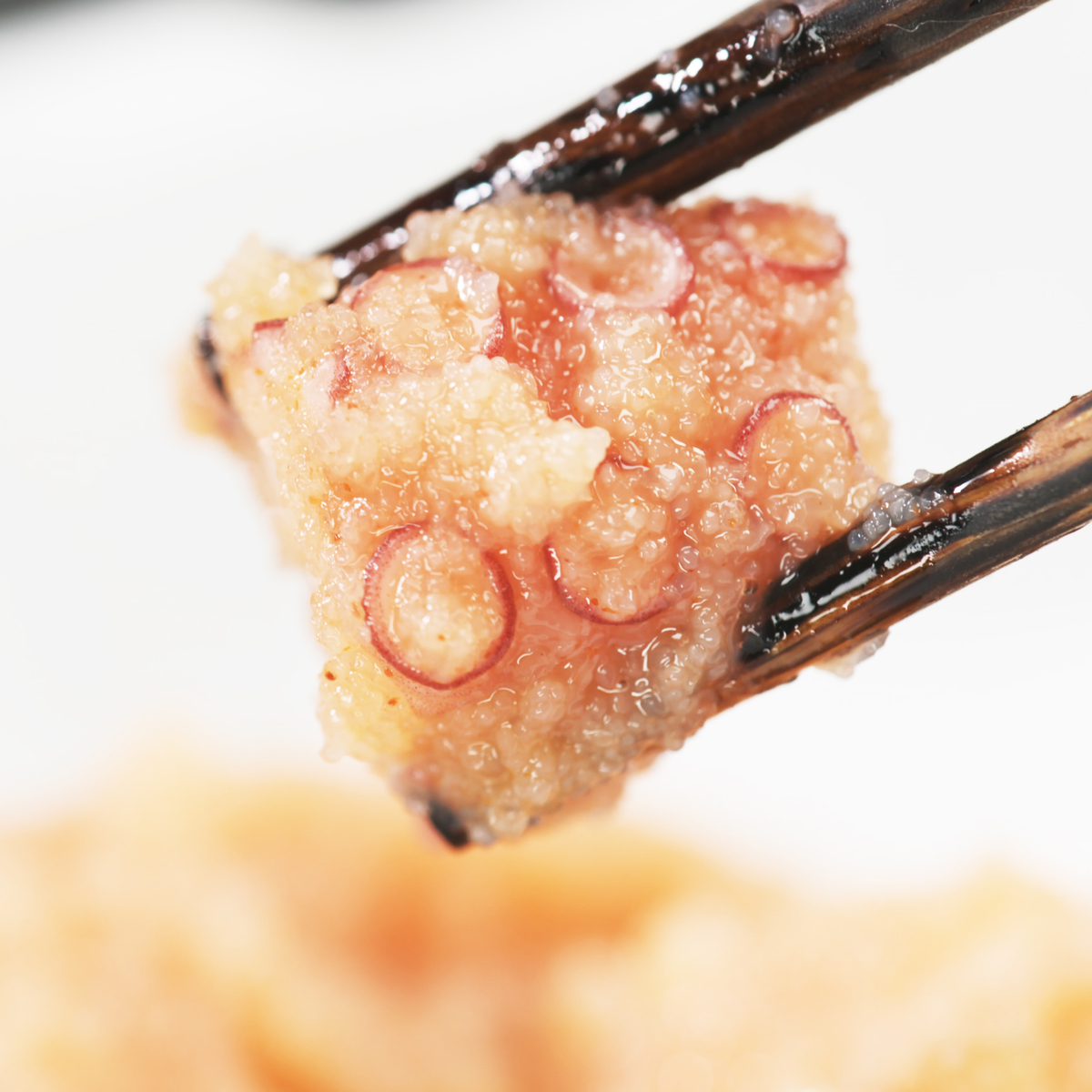 北海道産原料を使った辛子めんたいと、旨み豊かなたこを合わせた一品。辛子めんたいの辛さと、たこの甘みが口の中で広がり、絶妙な味わいを楽しめます。食卓の一品やお酒のお供におすすめです
