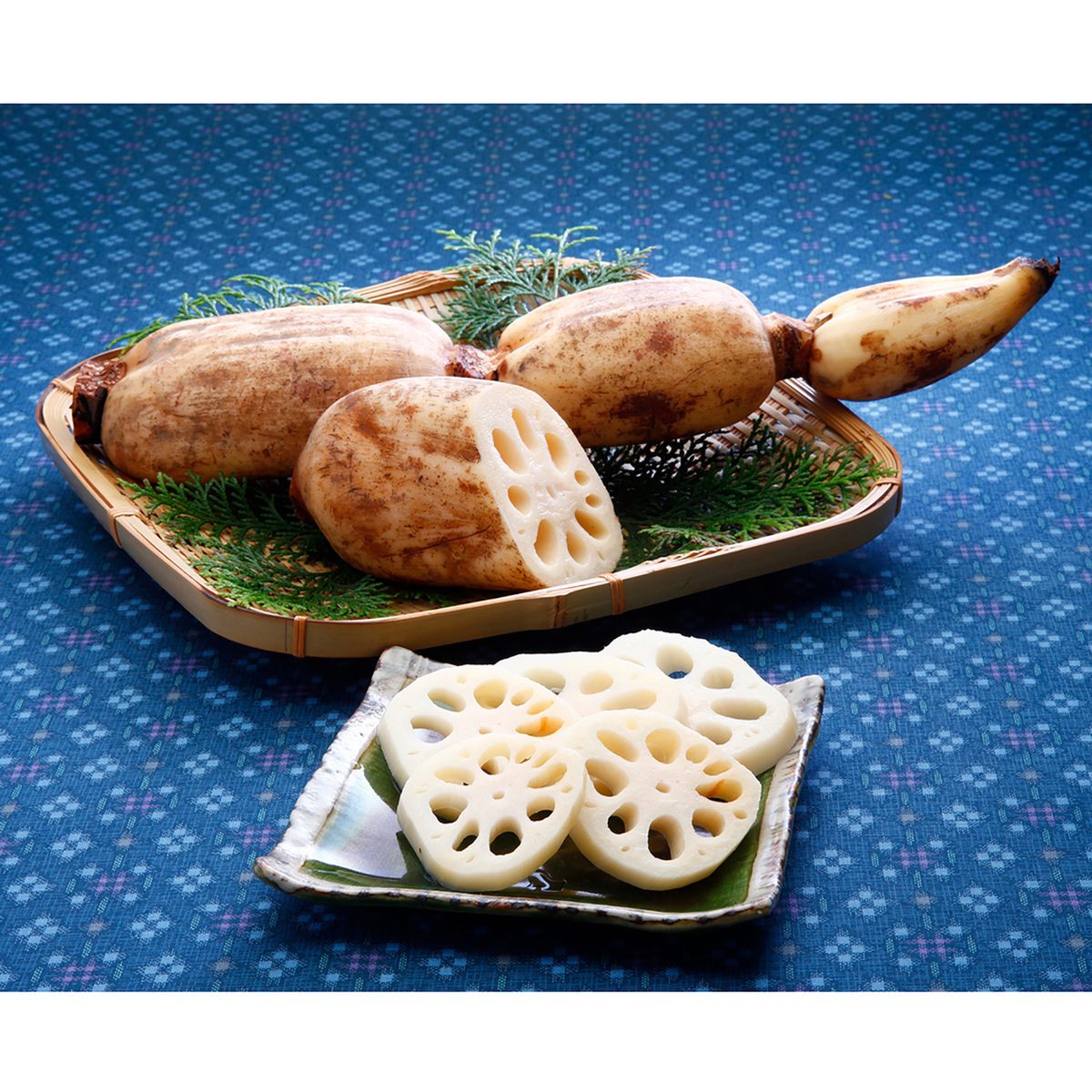 加賀れんこんの一番の特長はねばり。きめが細かく食べた食感は、もちもちしています。全体的には小ぶりですが、肉厚で穴も小さいため、食べ応えがあります