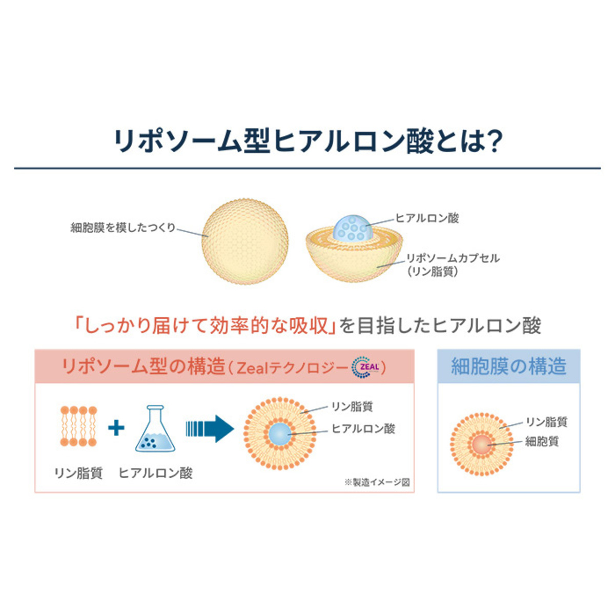 全量約114mg中、約47.5mgがAurea社のZealテクノロジーで作られたリポソーム型ヒアルロン酸(*3)です