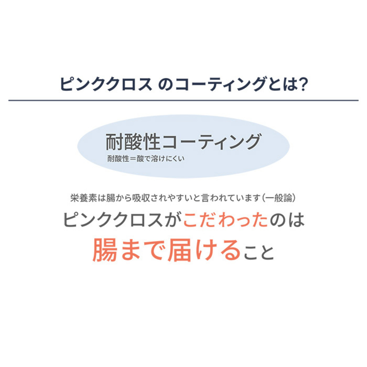 錠剤タイプで飲みやすく、ピンククロスシリーズの特長である耐酸性コーティングを施しています