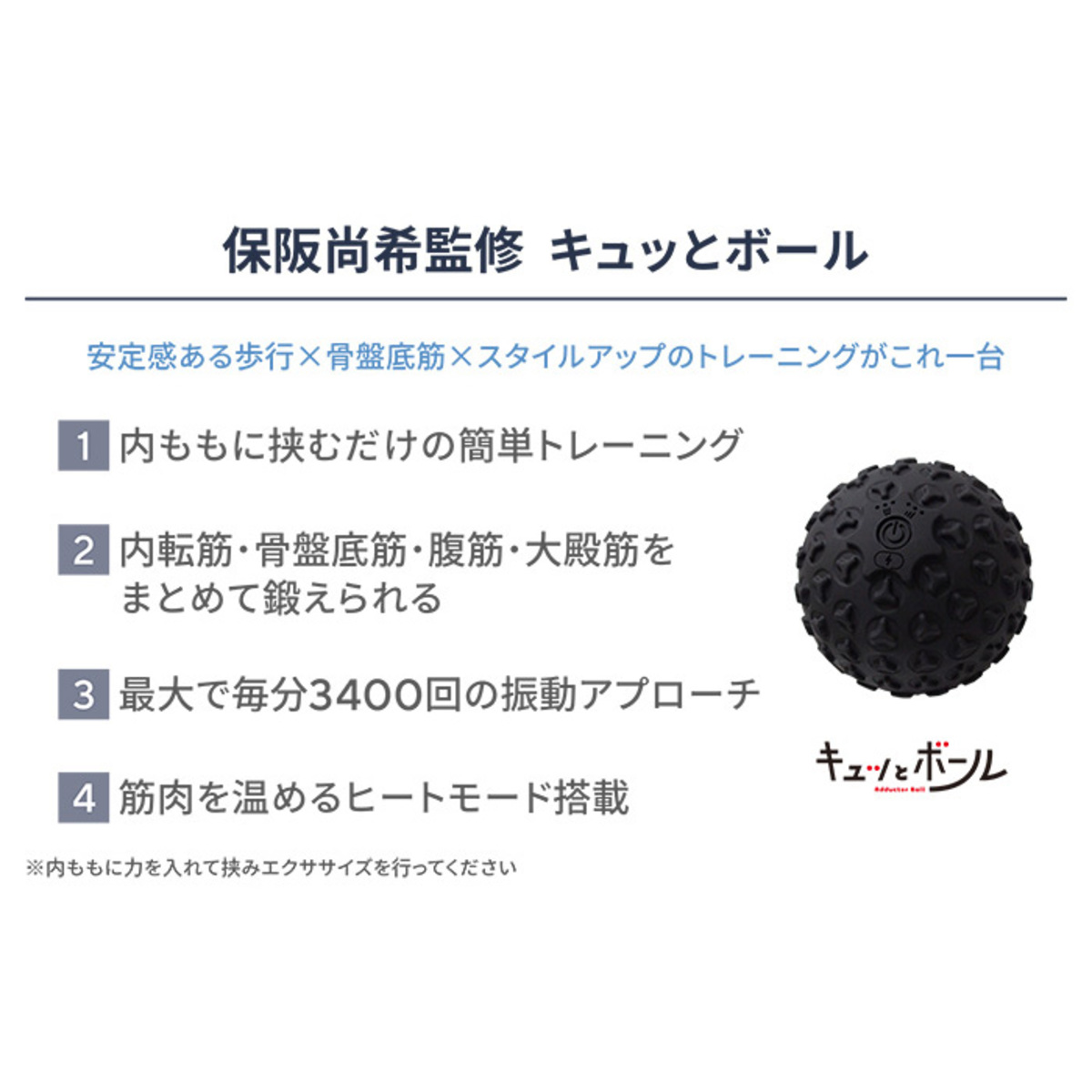 保阪尚希さん監修のエクササイズ機器キュッとボール。内ももに挟んで力を入れることでエクササイズができるアイテムです