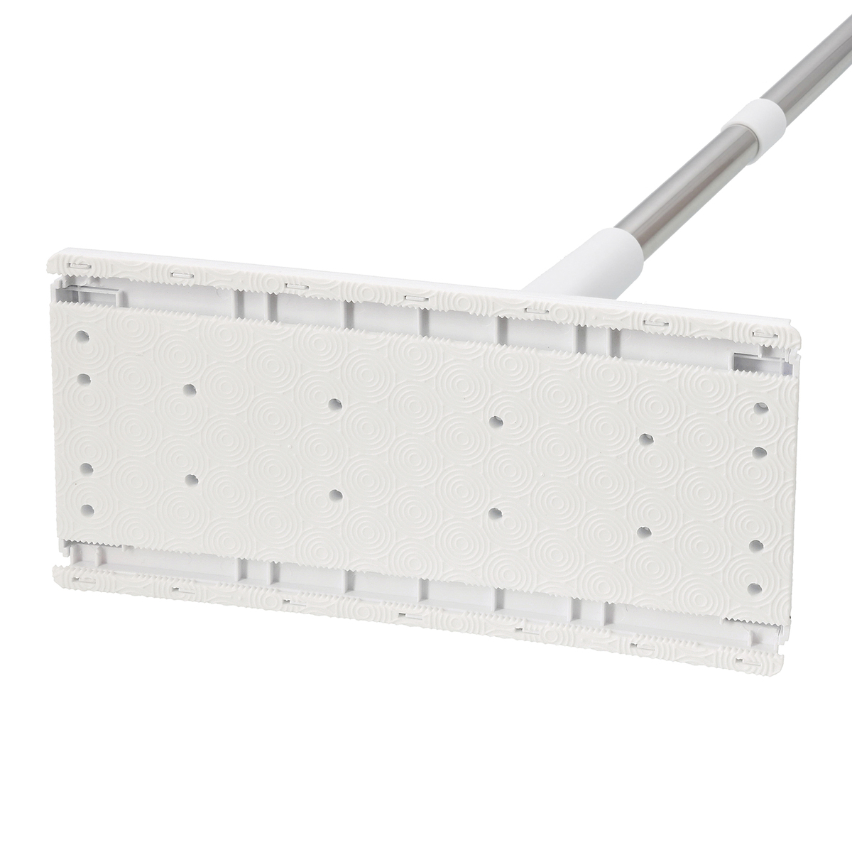 その場で自立するので立掛け不要、便利なお掃除用具です。シートを床に広げ、本体のフラップが開いていることを確認してからシートの中央に置き、床に対して垂直に押し込めばシートの取り付けが完了。シートを外すときは、柄を引くだけ*でシートをポイッっとでき、シートに触れずに捨てることができます