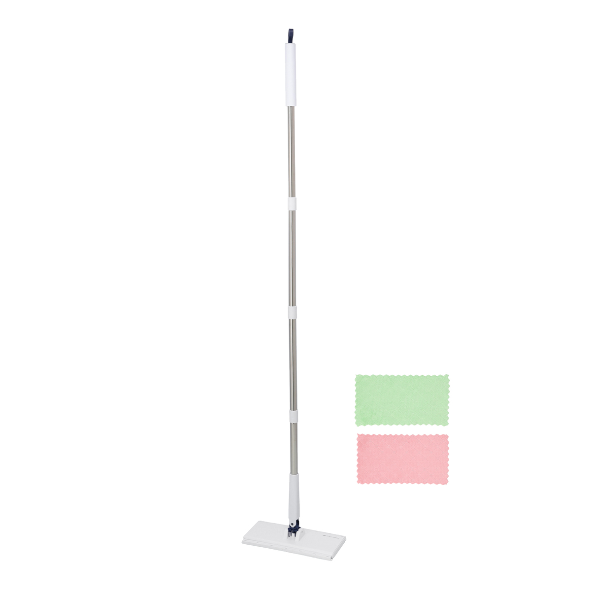 [商品内容] ・本体 ・グリップ ・柄2本 ・クロス(グリーン、ピンク各1枚計2枚) [サイズ] モップ本体:(約)25×10×125cm クロス:16×27cm [重量] モップ本体:390g [対応シート] 約20×30cm以上(各種市販シート対応) [材質] 本体:ポリプロピレン、ABS 樹脂、ポリエチレン、TPR 柄:SUS201、ポリプロピレン グリップ:SUS201、ポリプロピレン、TPR クロス:ポリエステル [使用方法] <シートの取り付け方> ・シートを床に広げてください ・本体のフラップが開いている事を確認しシートの中央に置き、床に対して垂直に押し込んでください ※押し込む際は柄を必ず垂直にして押し込んでください。柄が前後左右どちらかに倒れているとうまく取り付けができません <シートの外し方> 本体の根本部分を垂直にしてしっかり持ち、もう片方の手で柄の部分を引きます [お手入れ] ・汚れたときなどは薄めた中性洗剤で汚れを落とし、水をふくませた布で拭き取ってください。そのあとしっかりと水気を取ってください ・シンナー・ベンジン・磨き粉などは使用しないでください 【中国製】 [注意事項] <本体> ※本品は清掃用具です。用途以外には使用しないでください ※シートは付属していません。別途お買い求めください ※推奨シートサイズ:約20x30cm以上 ※シートを装着する際は、しっかりとした硬い床で取り付けてください ※本製品を使用する際は、床に強く押しつけず、すべらせるように使用してください ※柄はしっかりしめて固定してからご使用ください ※柄の接続時などに指をはさまないようにご注意ください ※柄の内部に指を入れないでください ※シートの取付け・取外しの際は、力を入れすぎると本体を破損する恐れがありますのでご注意ください ※砂粒や硬いゴミが付着したシートを使用すると、清掃面などを傷つけるおそれがあります ※シートがきちんと固定されているかご確認ください ※柄を落とさないようにご注意ください。本製品の破損や床へのキズつきの原因になります。キズがつきやすい箇所には使用しないでください ※コンクリートや壁面など、表面のザラザラしている場所へのご使用はしないでください。シートの破れの原因になります ※危険ですので振り回さないでください ※使用中にシートが破れた際は破れたシートを廃棄し、新しいシートをご使用ください。使用後は必ずシートを本体から取り外してください ※ヘッドクッション部分やストッパーは長期間のご使用により劣化する場合があります。製品が劣化した場合は買い替えてください ※火気のそばや熱源に近づけないでください。高温により変形する場合があります ※直射日光の当たらない場所に保管してください。劣化・変色の原因になります ※小さなお子様の手の届かない場所で使用・保管してください <クロス> ※用途によっては、一度洗ってから使用される事をお勧めします ※貴重品・高額商品(漆・金箔等)や塗装面などの柔らかい面への使用につきましては十分注意してお使いください ※色落ちする場合があります。特に濃色の布は注意してください ※洗った後は乾燥機は使用せずに陰干しでよく乾かしてください ※異物が付着したまま使用しますと、表面を傷つける恐れがあります ※熱に弱い素材ですので火のそばに置かないでください ※アイロン掛け・煮沸消毒・乾燥機の使用は、繊維を傷める恐れがあります ※素材はポリエステル繊維のため、廃棄される場合はお住まいの自治体の定める方法に従い処分してください ※天使のワンタッチクリーパーに装着の際は摩擦面ではなく滑りやすい場所で装着をしてください ※このコーラルフリースは両面使用できます ※汚れたら中性洗剤でもみ洗いをしてください ※洗濯機で洗う場合はネットに入れてください