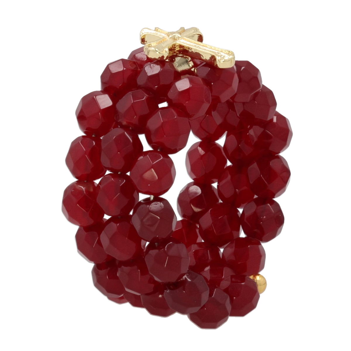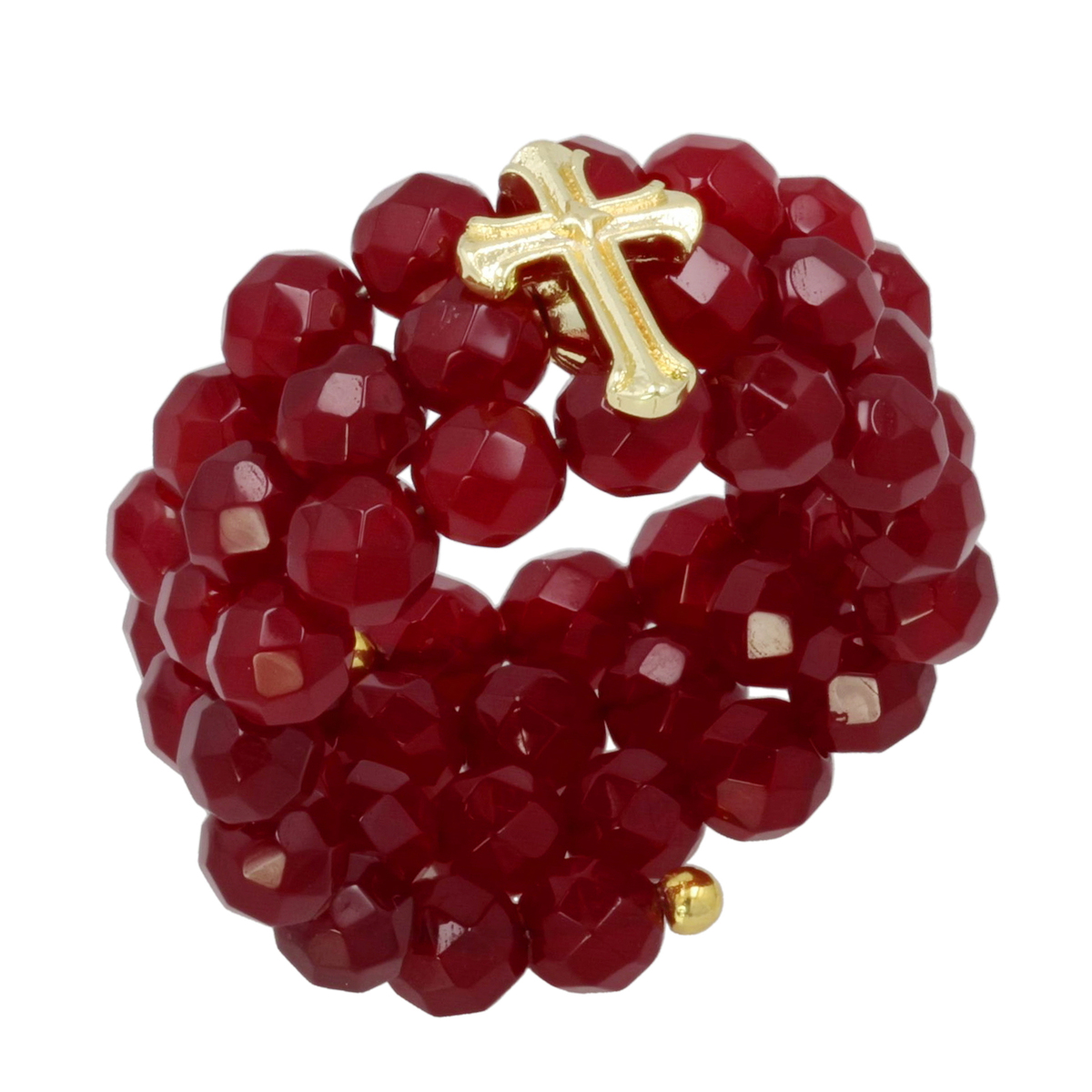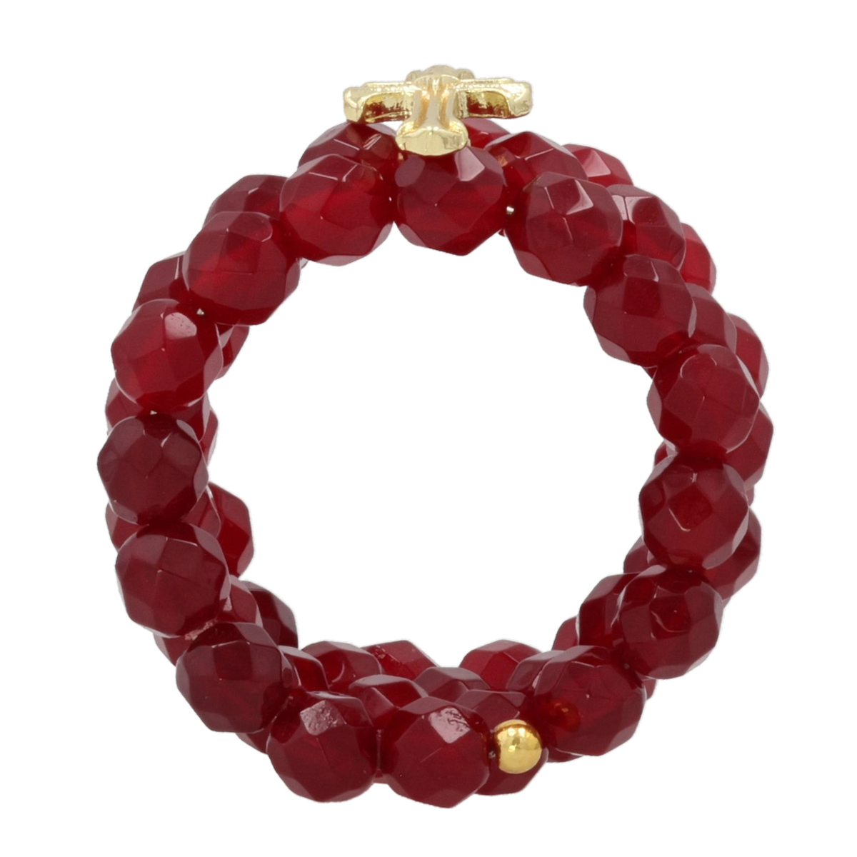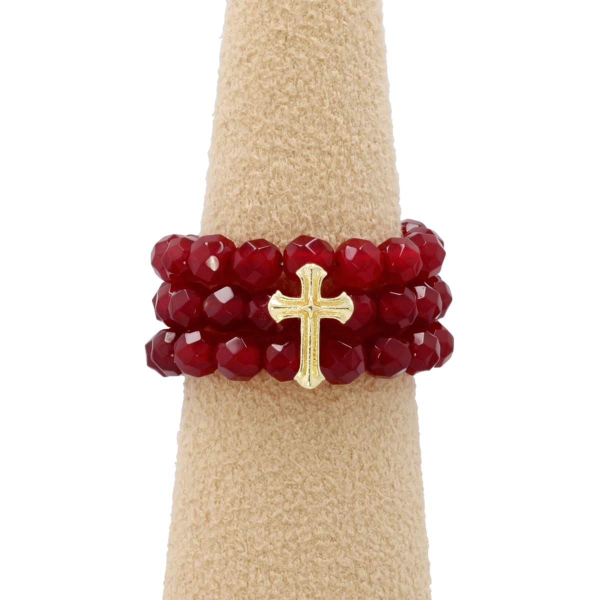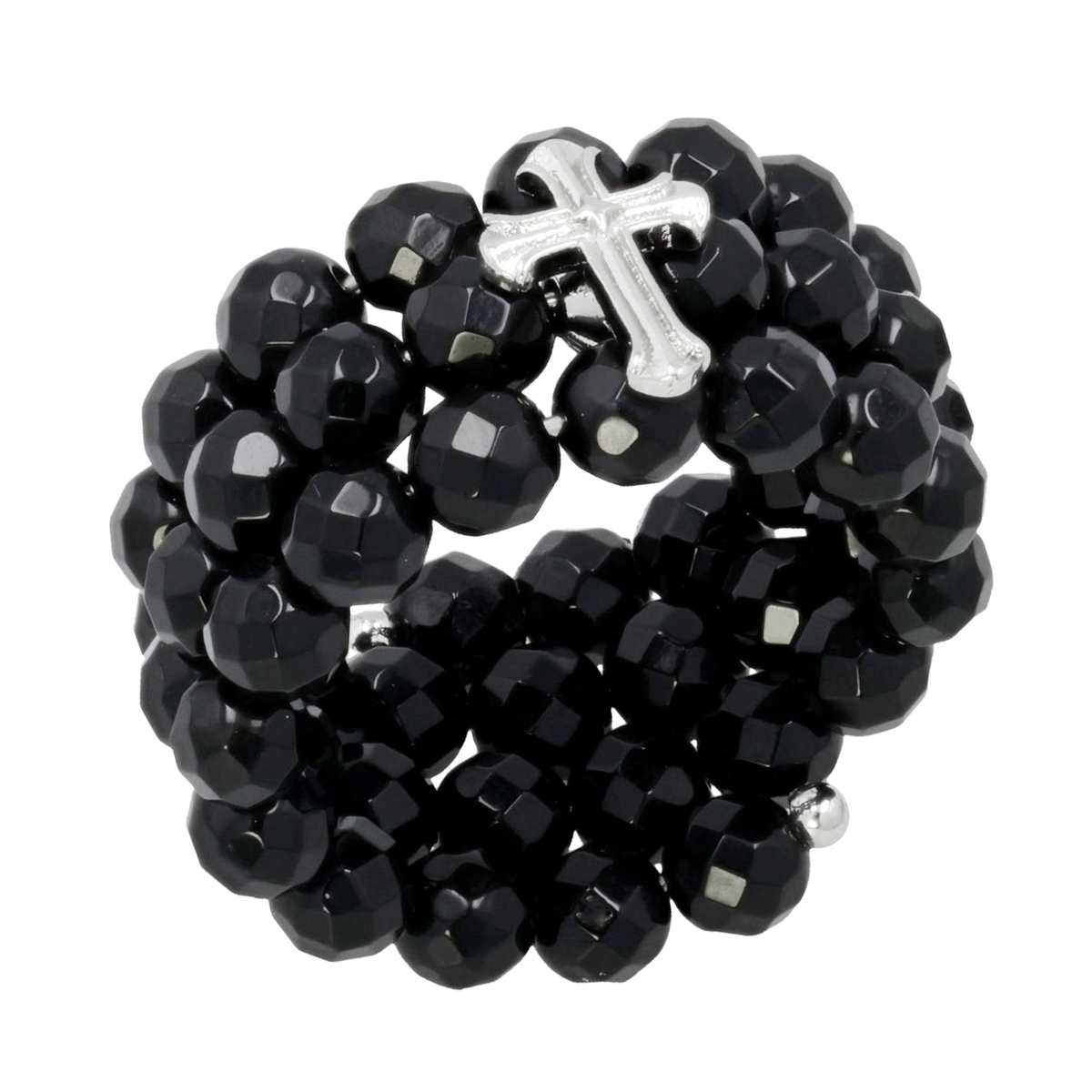 天然石とクロスモチーフが上品に調和したコイルリング。多面カットを施した天然石は、落ち着いた色合いの中にも角度によって繊細な輝きを放ち、指先にさりげない華やかさを添えます