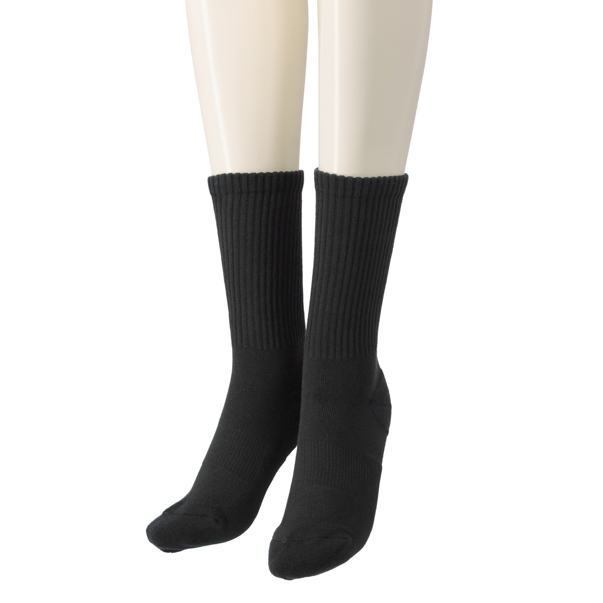 足首をサポートする編地で、土踏まずにフィット。メッシュ仕様で蒸れにくく、つま先と踵は糸補強で破れにくいです。足底はパイル仕様でクッション感があります