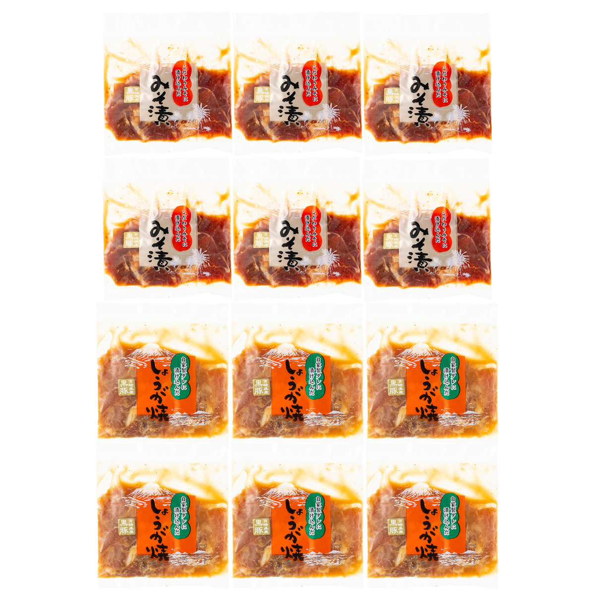[アレルギー物質特定原材料8品目] 小麦 [セット内容] ・しょうが焼き150g×6袋 ・味噌漬130g×6袋 [賞味期限] 出荷時点で賞味期限まで120日以上ある商品をお届けします [保存方法] 開封前:冷凍(ー18℃以下)で保存してください 開封後:お早めにお召し上がりください [お召し上がり方] ・本品が凍っている場合、必ず調理前に解凍を行ってください ・味付け処理をしていますので、中心部まで十分に加熱してお召し上がりください ・生姜タレまたはみそタレは絡めたまま、フライパンにアルミホイル又はクッキングシートを敷き、その上に本品を置いて中火で炒めてください [注意事項] ※本品が凍っている場合、必ず調理前に解凍を行ってください ※解凍の際は袋を開封せずに、冷蔵庫又は流水解凍してください。湯煎、オーブン、電子レンジでの調理はできません ※一度解凍した本品は、再冷凍されぬようにお願い致します [原料原産地] 豚肉(宮崎県産黒豚) [原産国] 日本 [原材料] しょうが焼き:豚肉(宮崎県産黒豚)、醤油、生姜、砂糖、味噌、みりん風調味料、にんにく、ごま油、食塩、ごま、なたね油、唐辛子/調味料(アミノ酸等)、酒精、酵素、酸味料、(一部に小麦・豚肉・大豆・ごまを含む) 味噌漬:豚肉(宮崎県産黒豚)、味噌、醤油、砂糖、還元水飴、にんにく、ごま油、ごま、唐辛子、生姜/調味料(アミノ酸等)、紅こうじ色素、(一部に小麦・豚肉・大豆・ごまを含む)